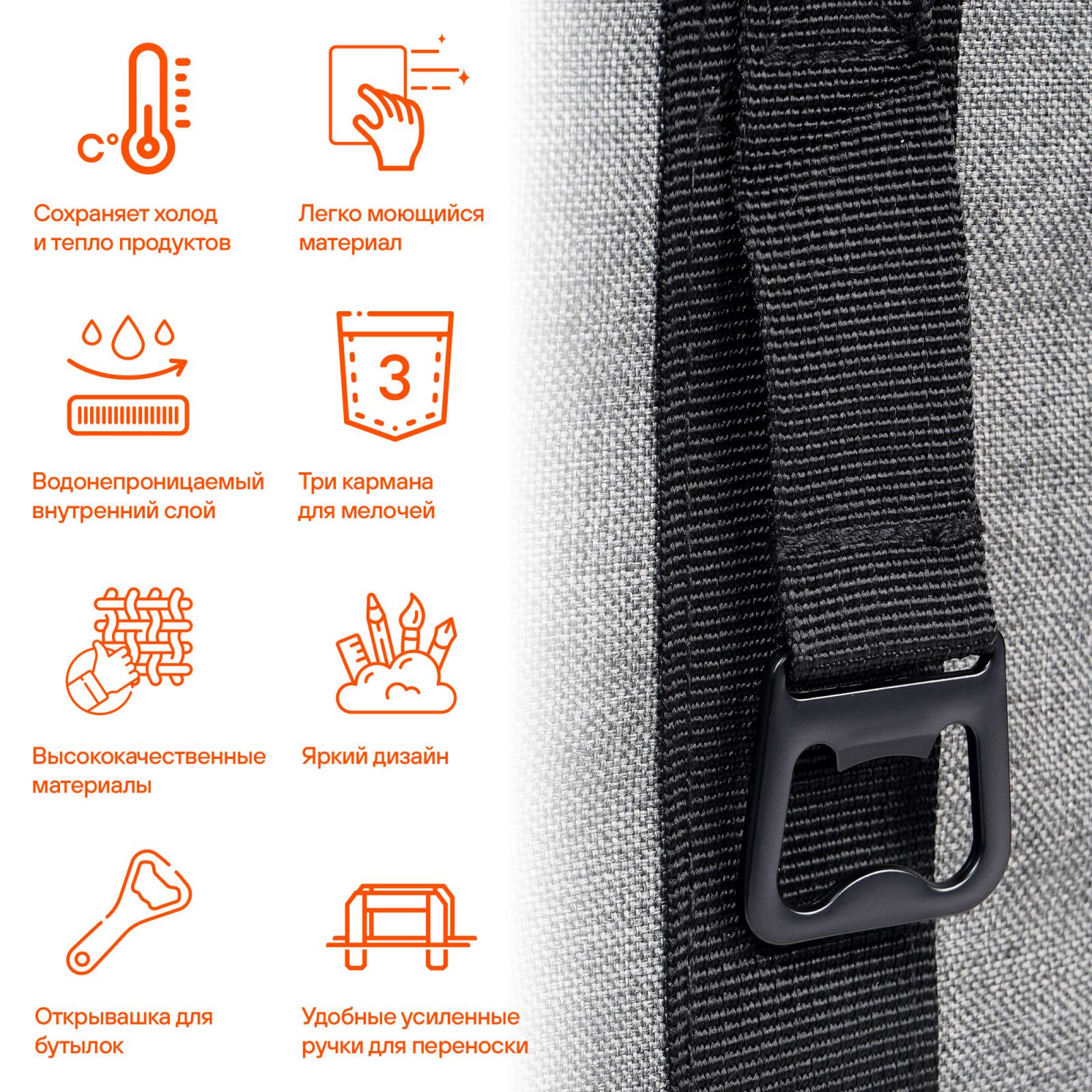 Сумка-холодильник (термосумка) 6л, 24*18*17см, цвет оранжевый/серый (AO-CB-01)