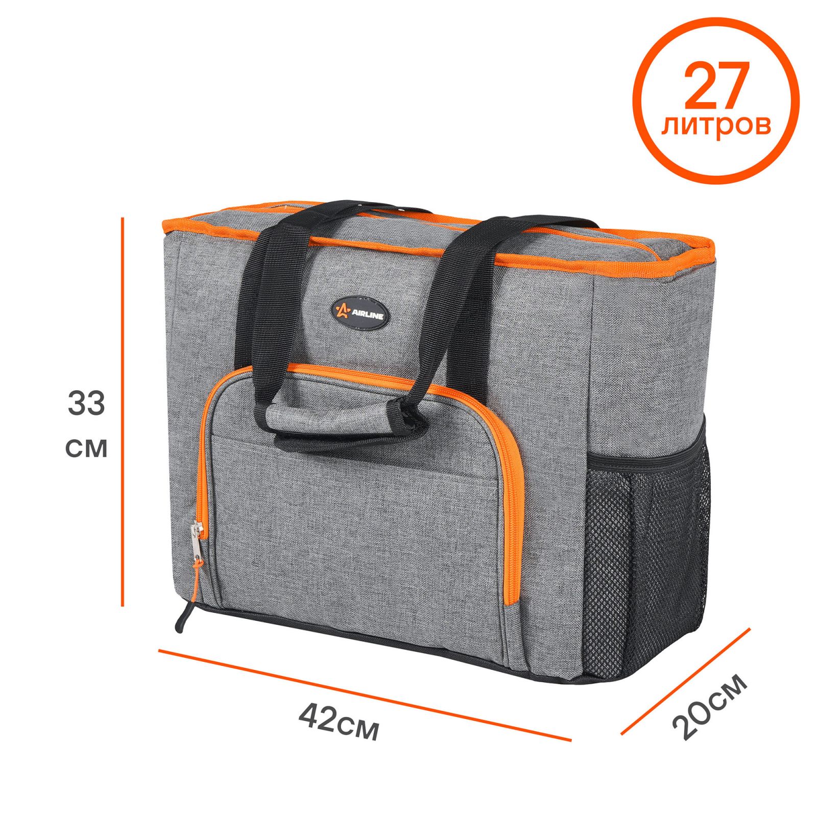Сумка-холодильник (термосумка) 20л, 43*23*22см, цвет оранжевый/серый (AO-CB-03)