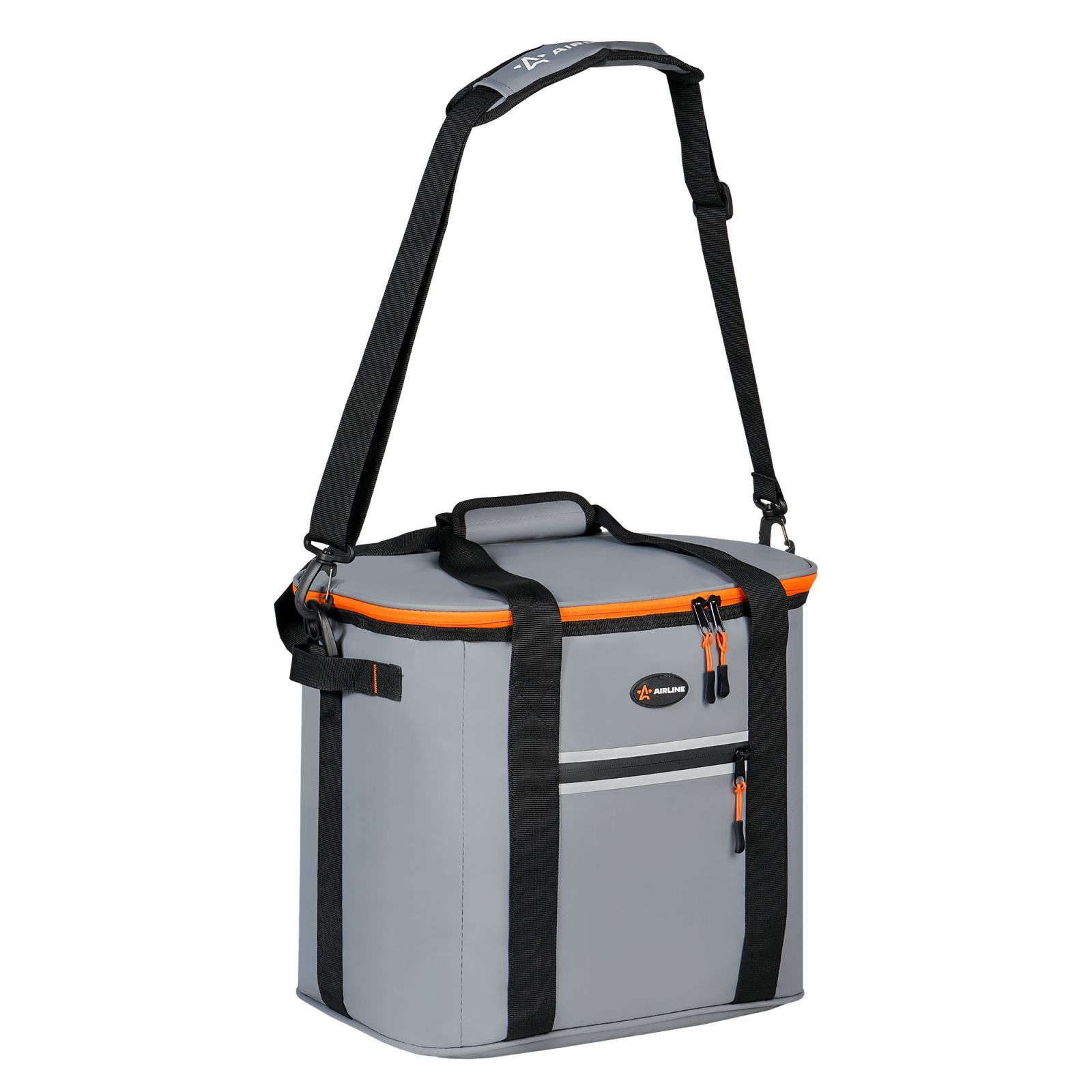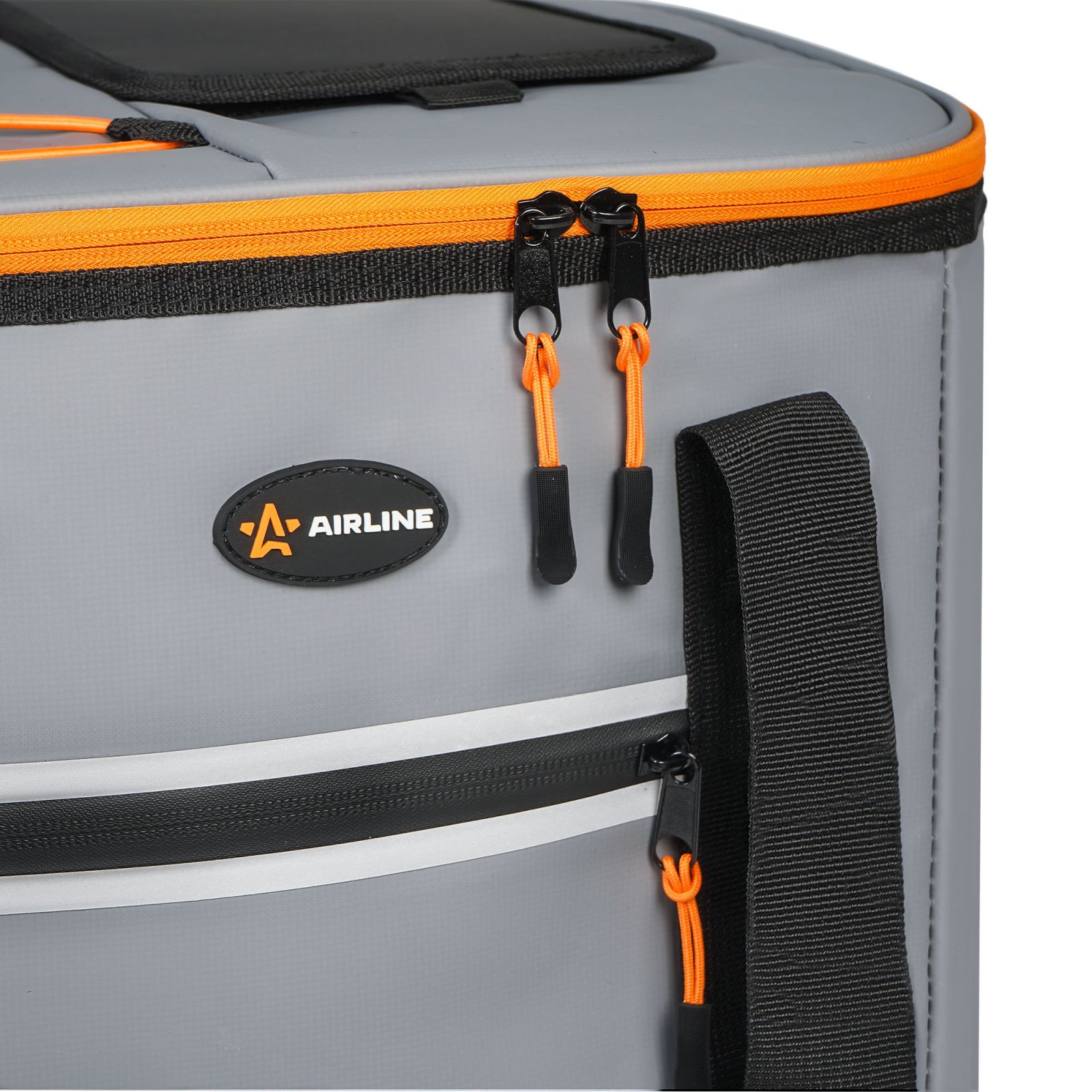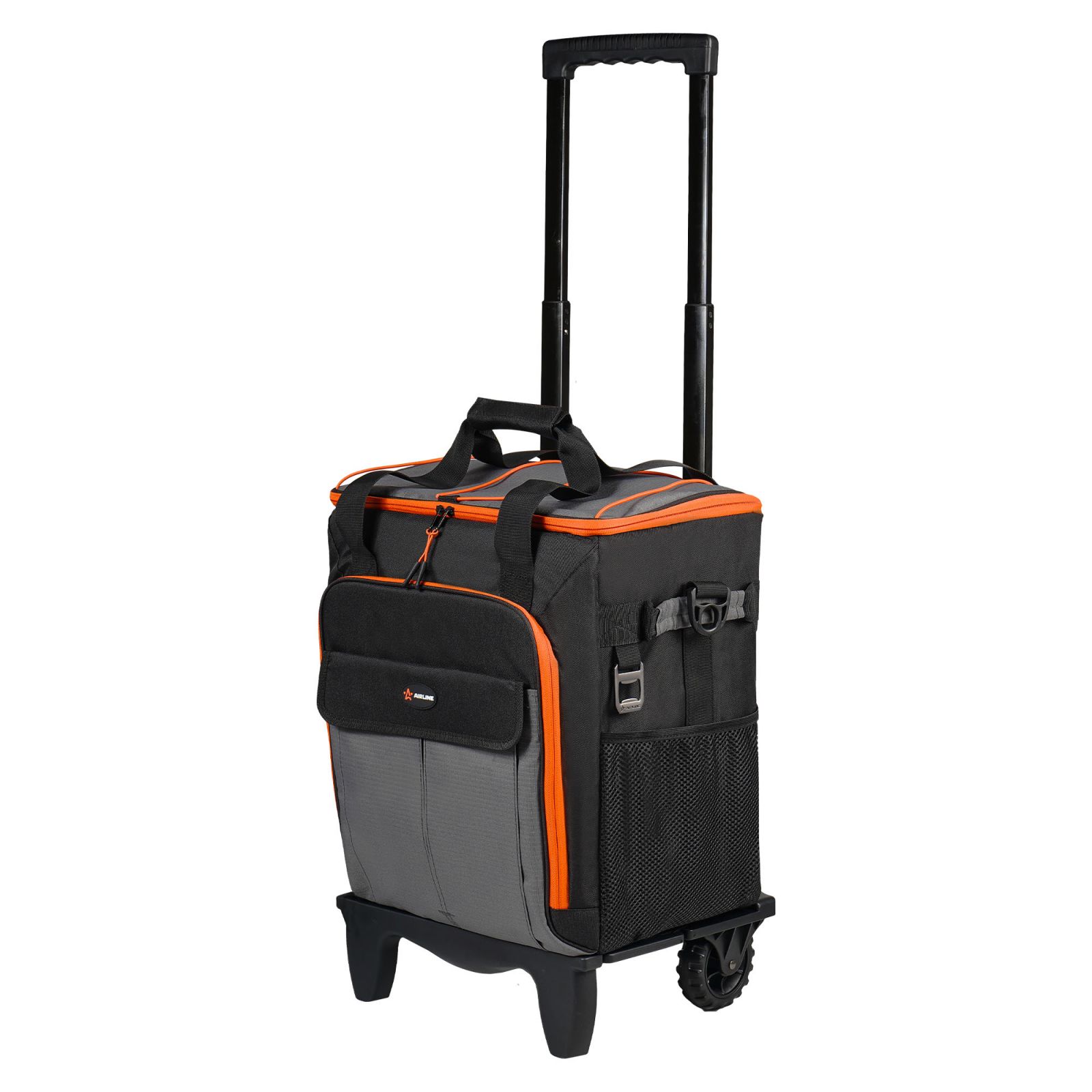 Сумка-холодильник (термосумка) на колесах с телескоп.ручкой 48 л, водонепр., черн./сер./оранж.(ADCB014)