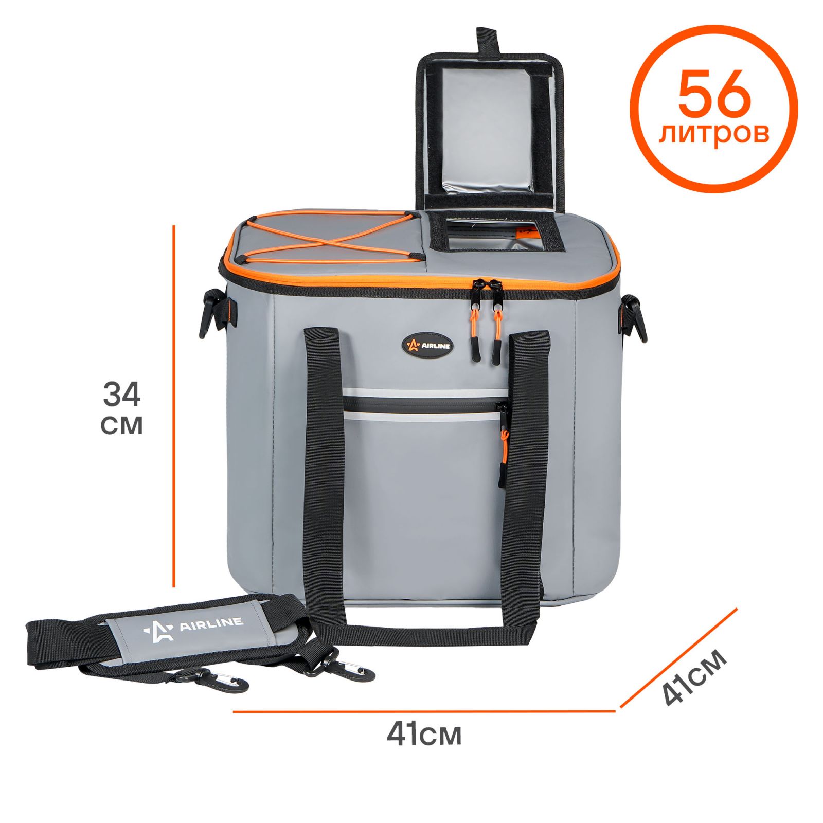 Сумка-холодильник (термосумка)"Пикник", 56л, 41*34*41см, водонепр.,серая (ADCB010)