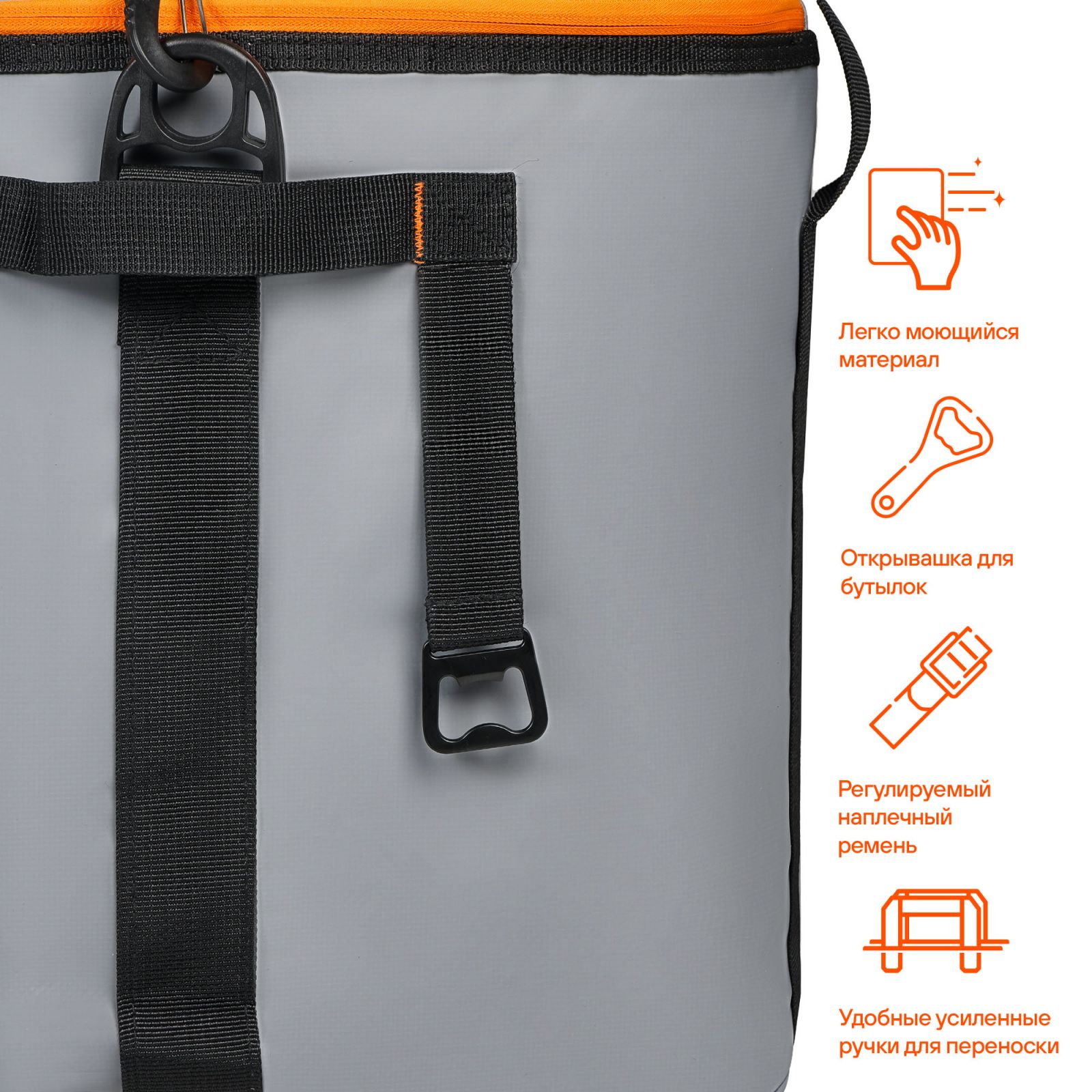 Сумка-холодильник (термосумка)"Пикник", 32л, 37,5*34*26см, водонепр.,серая (ADCB008)