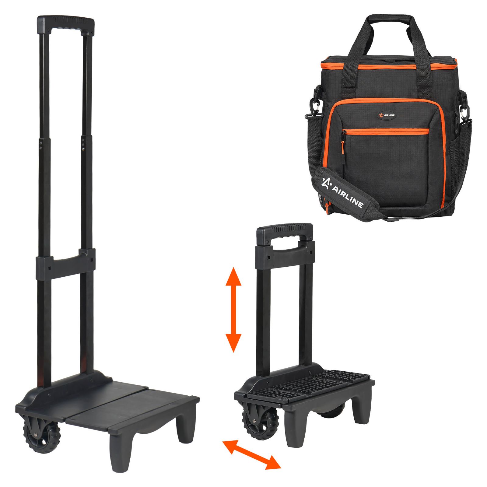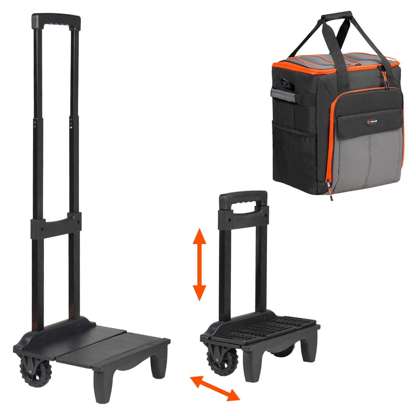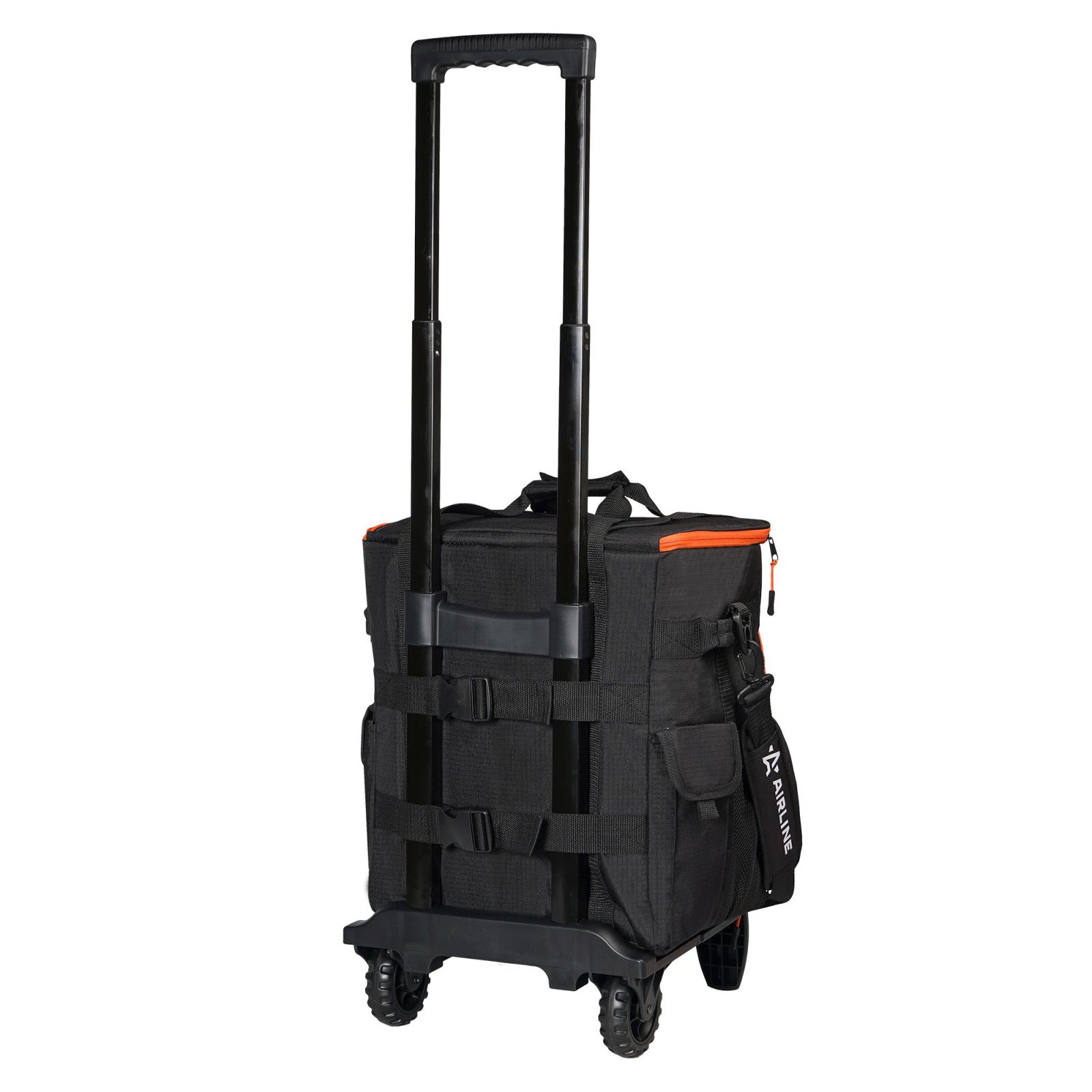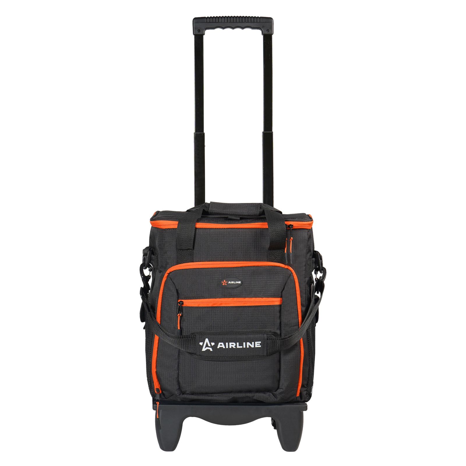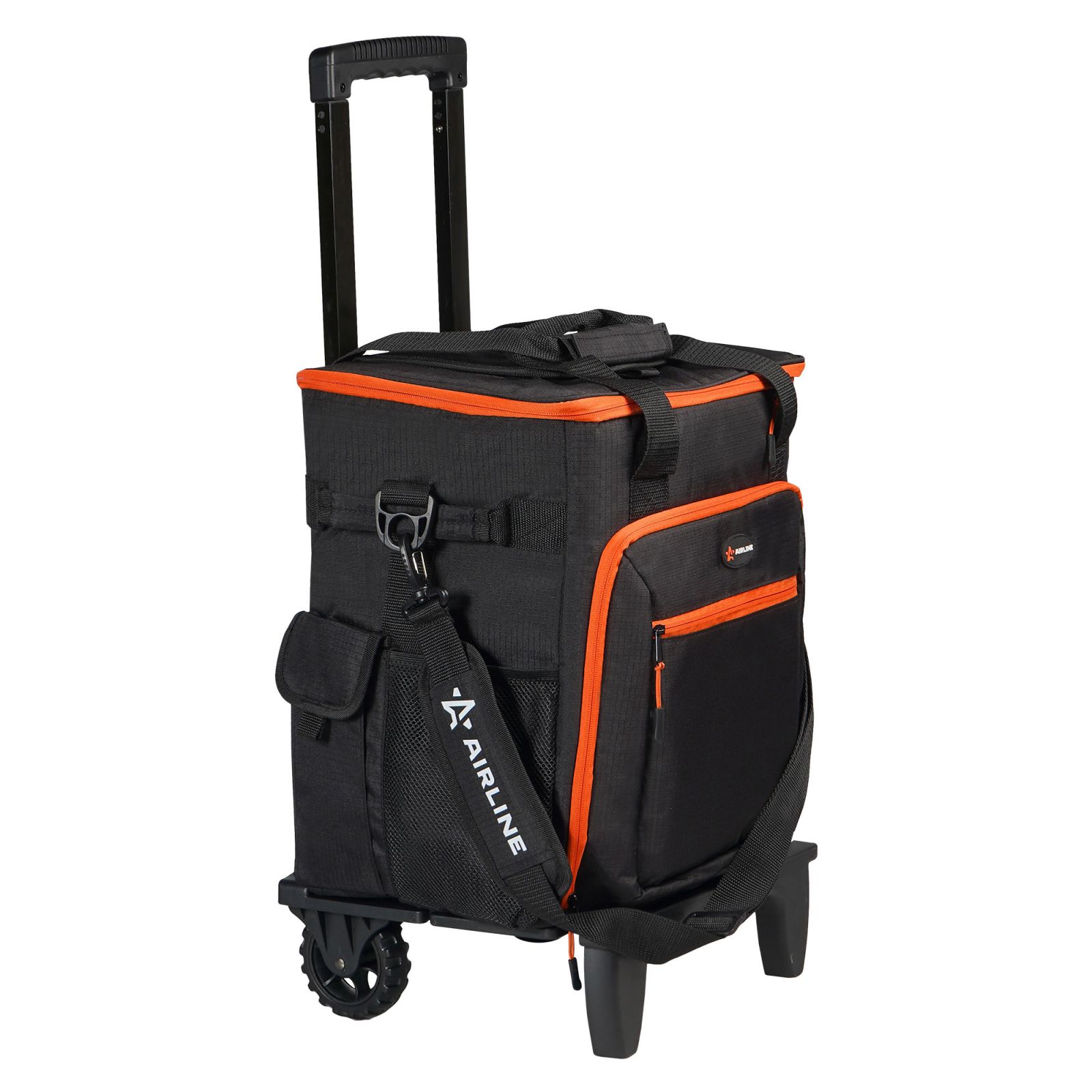Сумка-холодильник (термосумка) на колесах с телескоп.ручкой 48 л, водонепр., черн./оранж. (ADCB013)