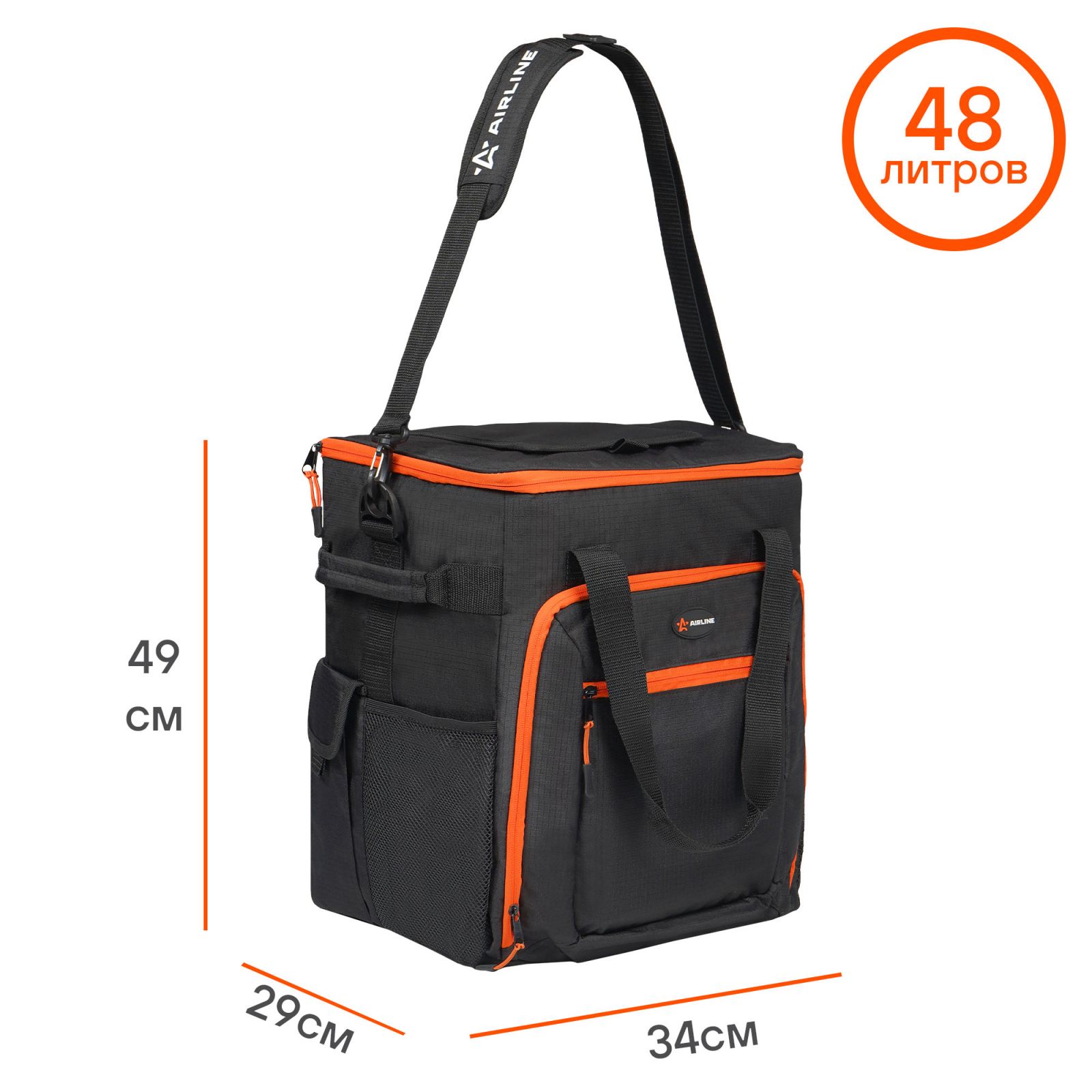Сумка-холодильник (термосумка) 50 л, 34*42*36 см, цвет черный/оранжевый (AO-CB-06)
