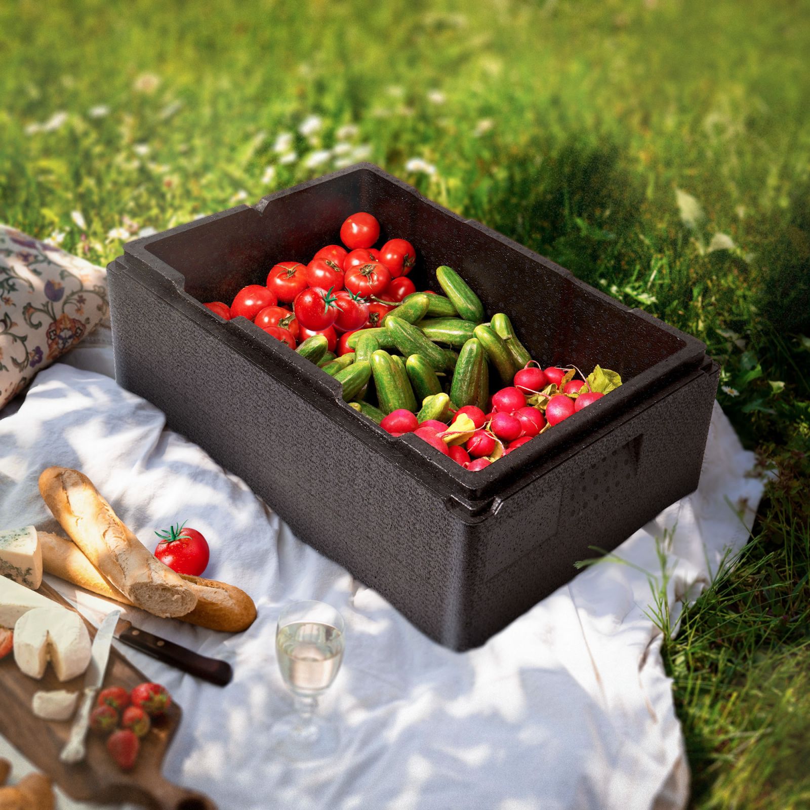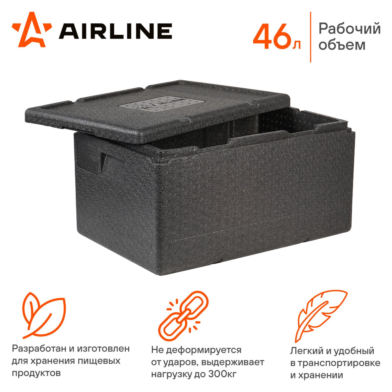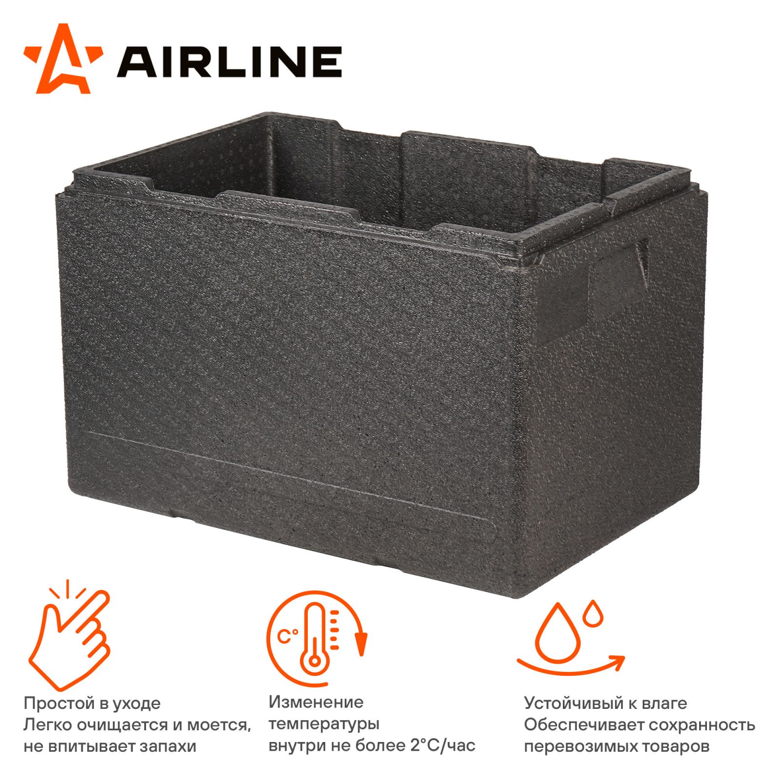 Термоконтейнер с крышкой 46 л, 600*400*320мм, ВПП, цвет черный (ADCB018)
