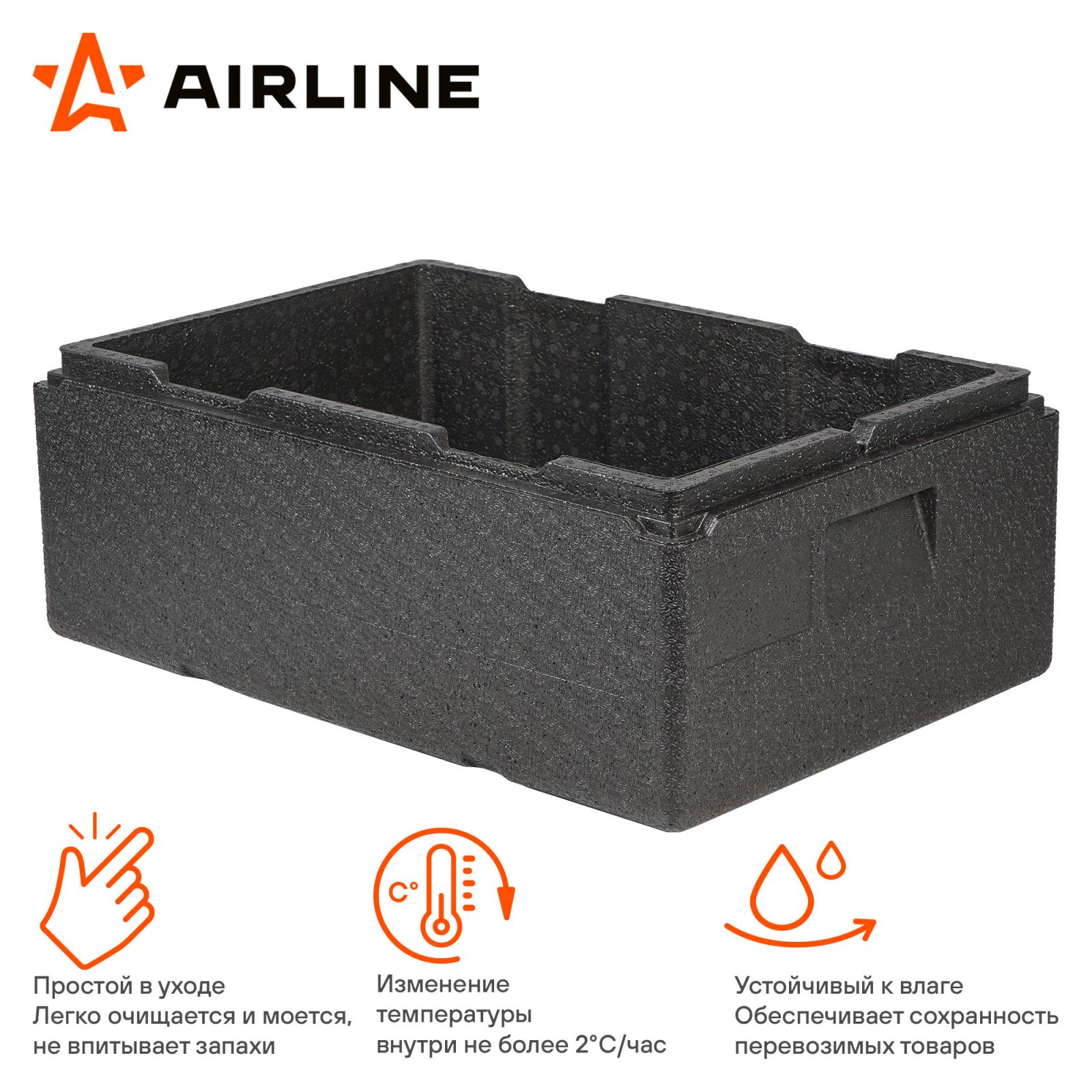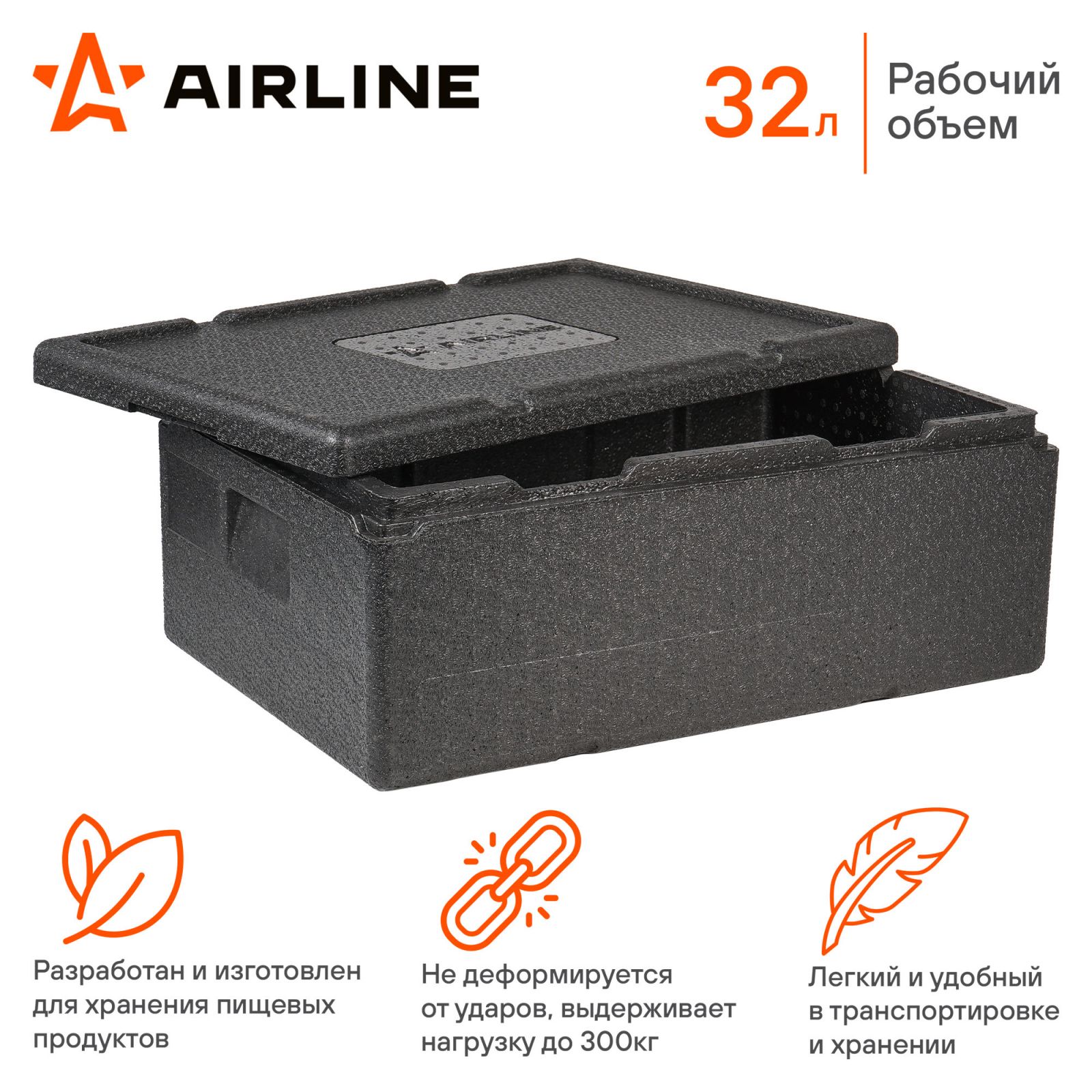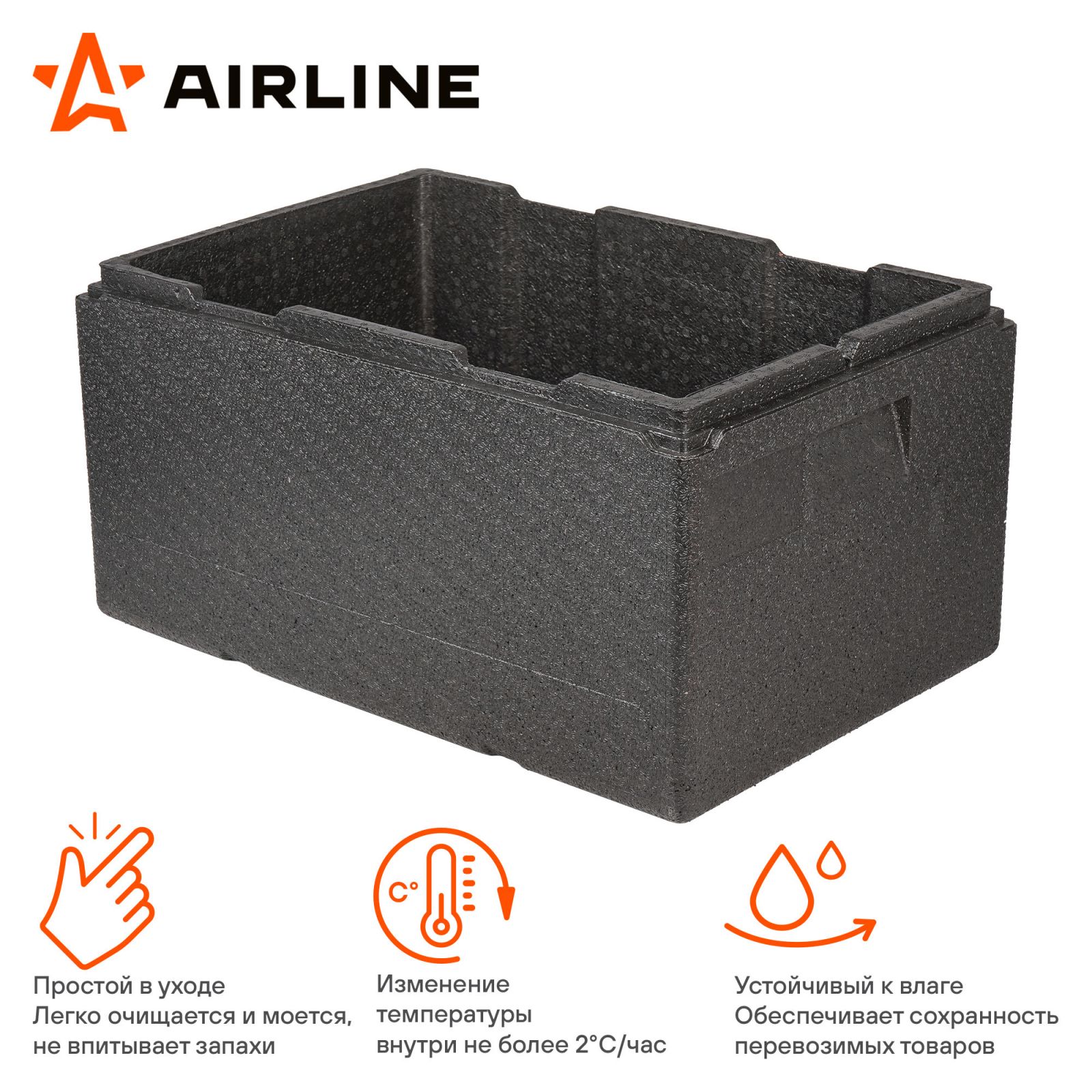 Термоконтейнер с крышкой 32 л, 600*400*240мм, ВПП, цвет черный (ADCB017)
