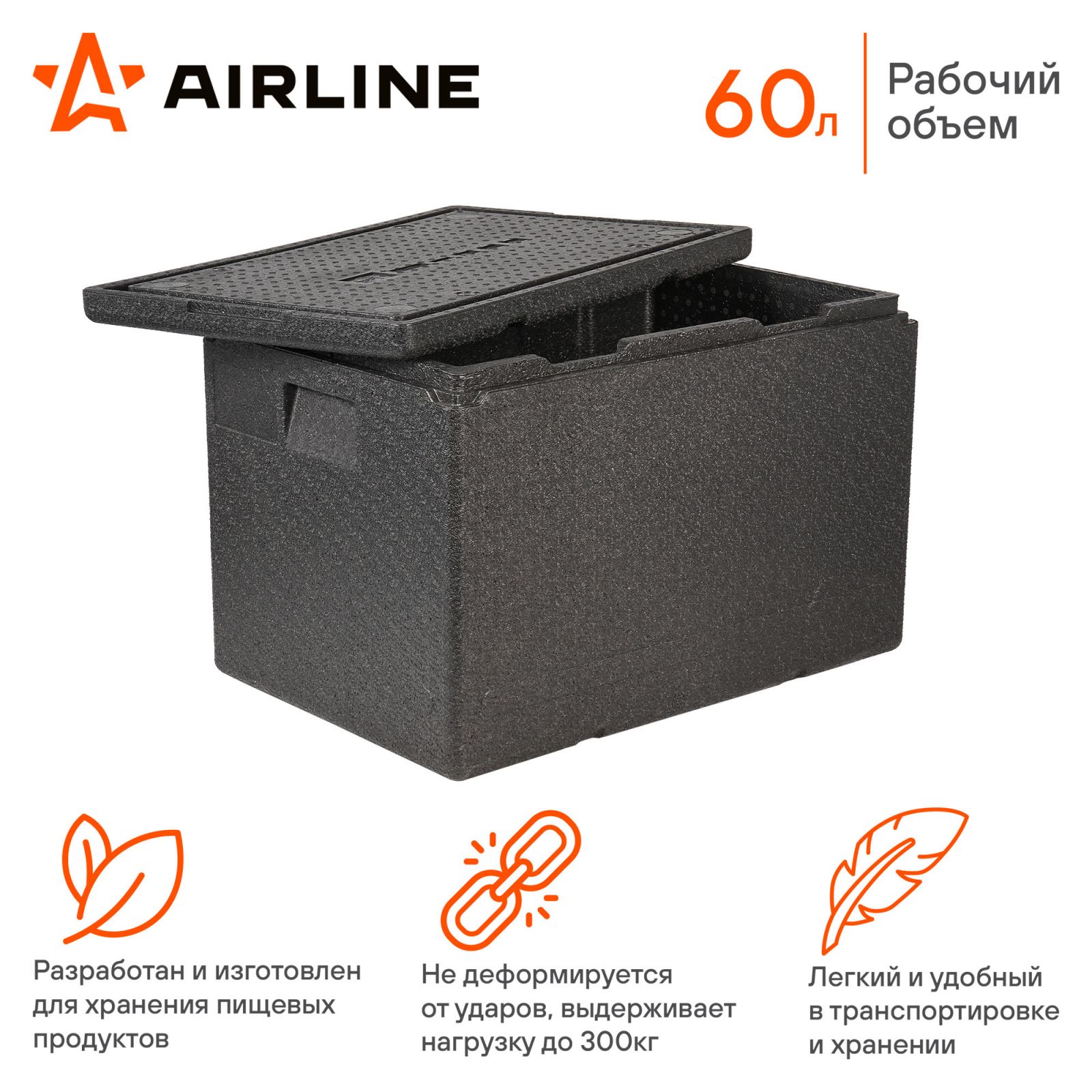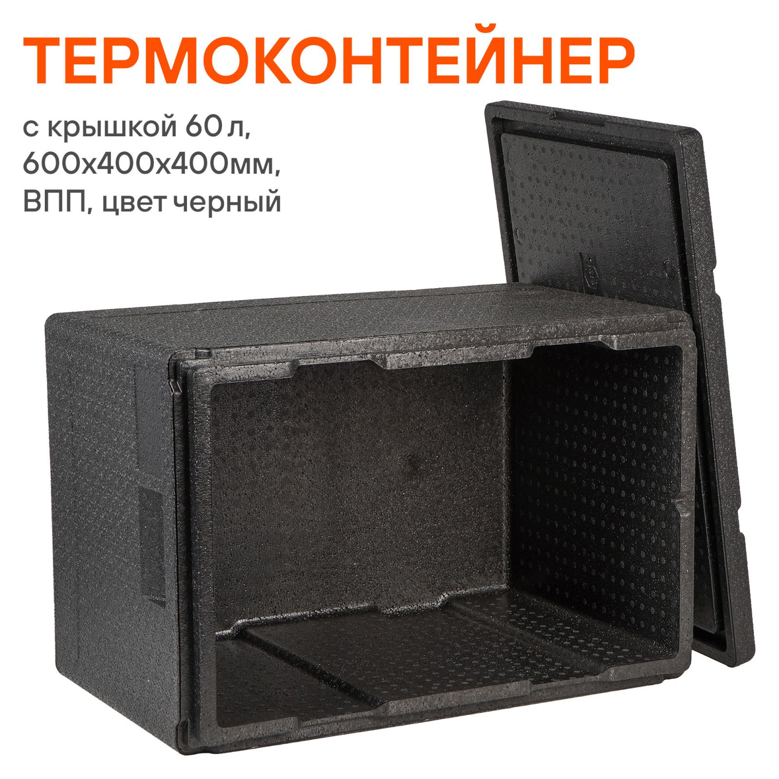 Термоконтейнер с крышкой 60 л, 600*400*400мм, ВПП, цвет черный (ADCB019)