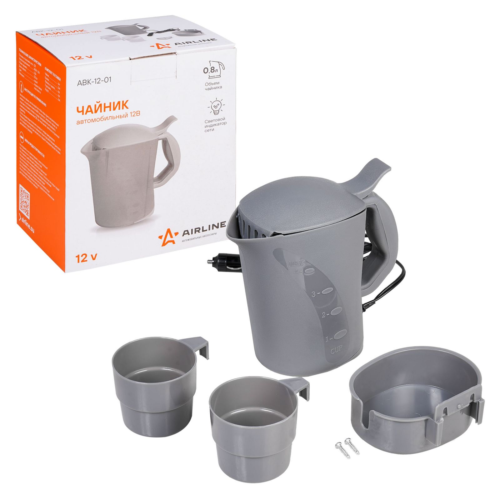 Чайник автомобильный 12В серый пластик (ABK-12-01)