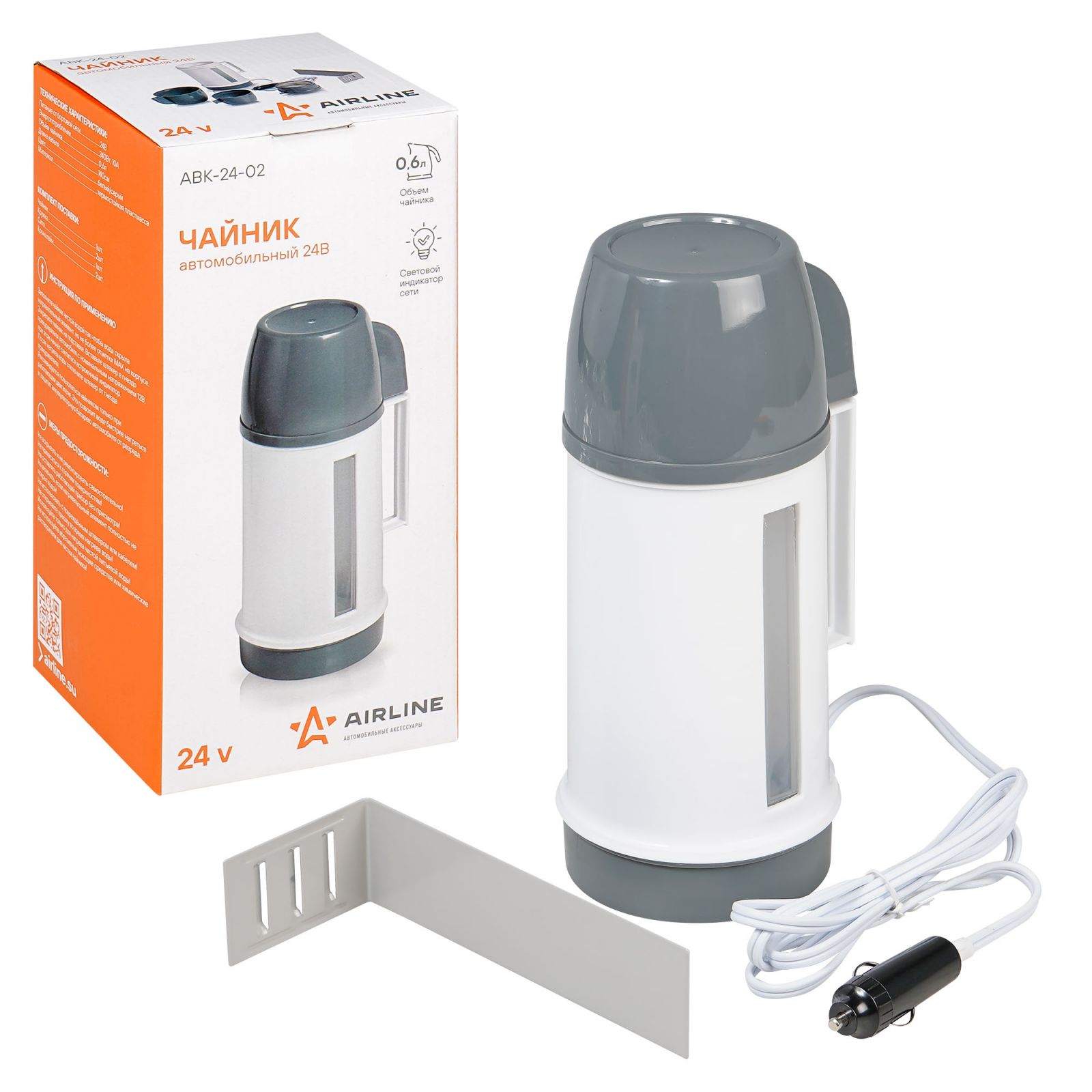 Чайник автомобильный 24В белый/серый пластик (ABK-24-02)