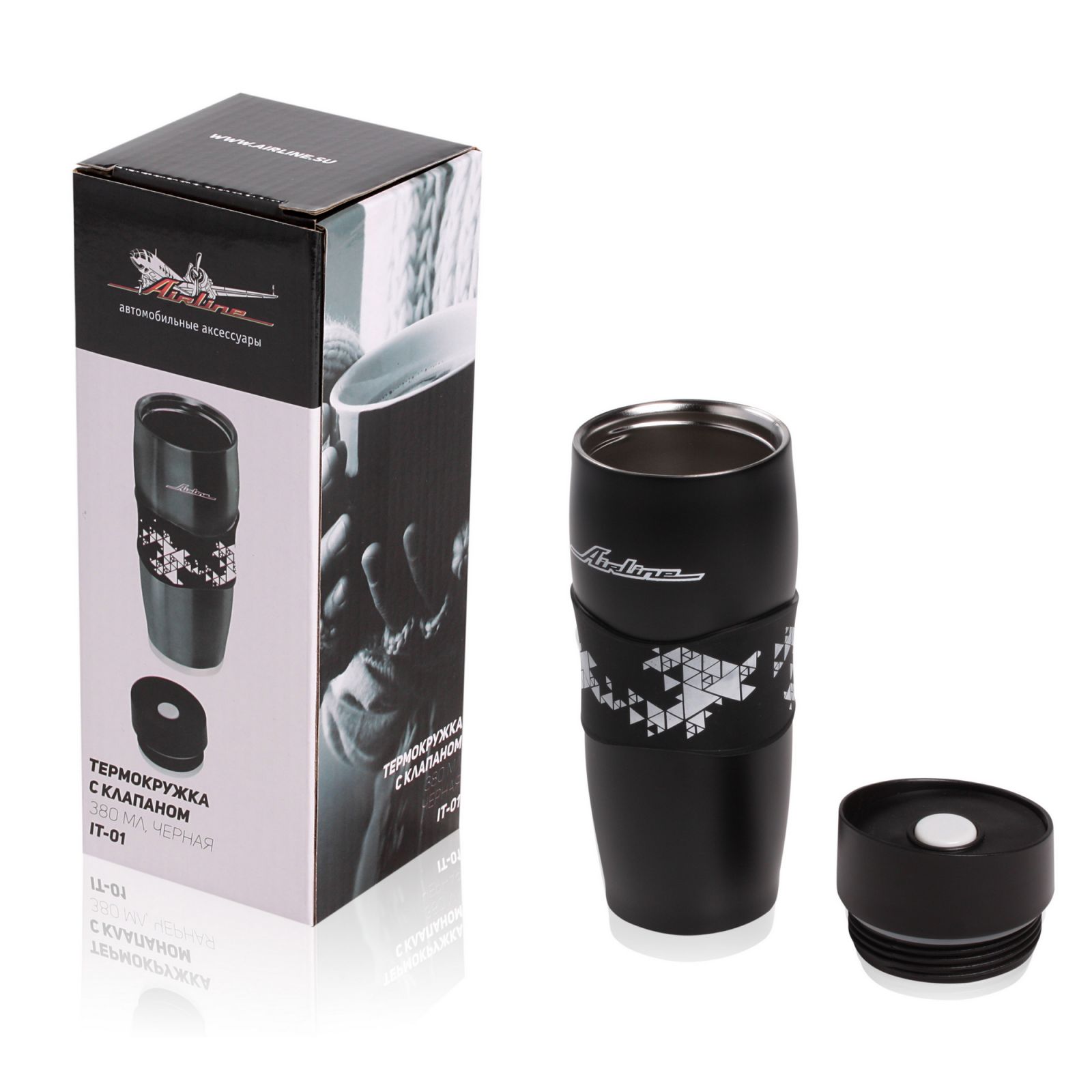 Термокружка c клапаном, 380 мл., черная (IT-01)