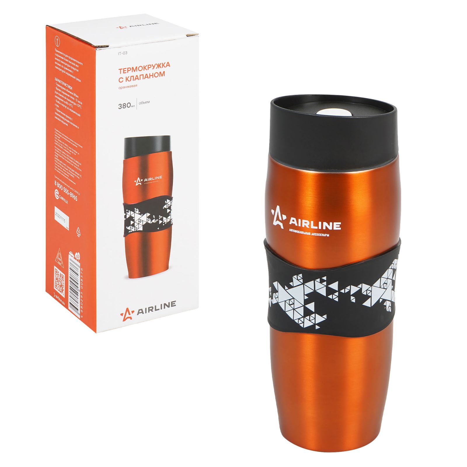 Термокружка с клапаном, 380 мл., оранжевая (IT-03)