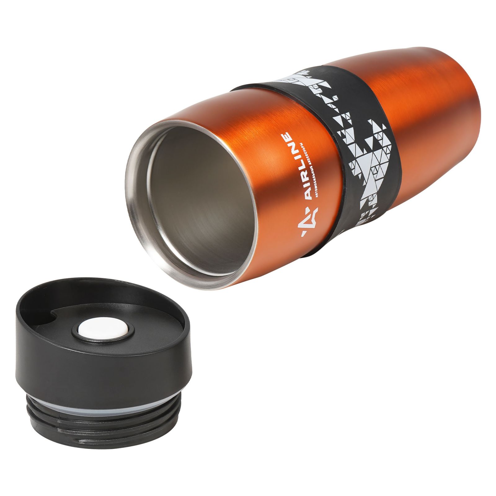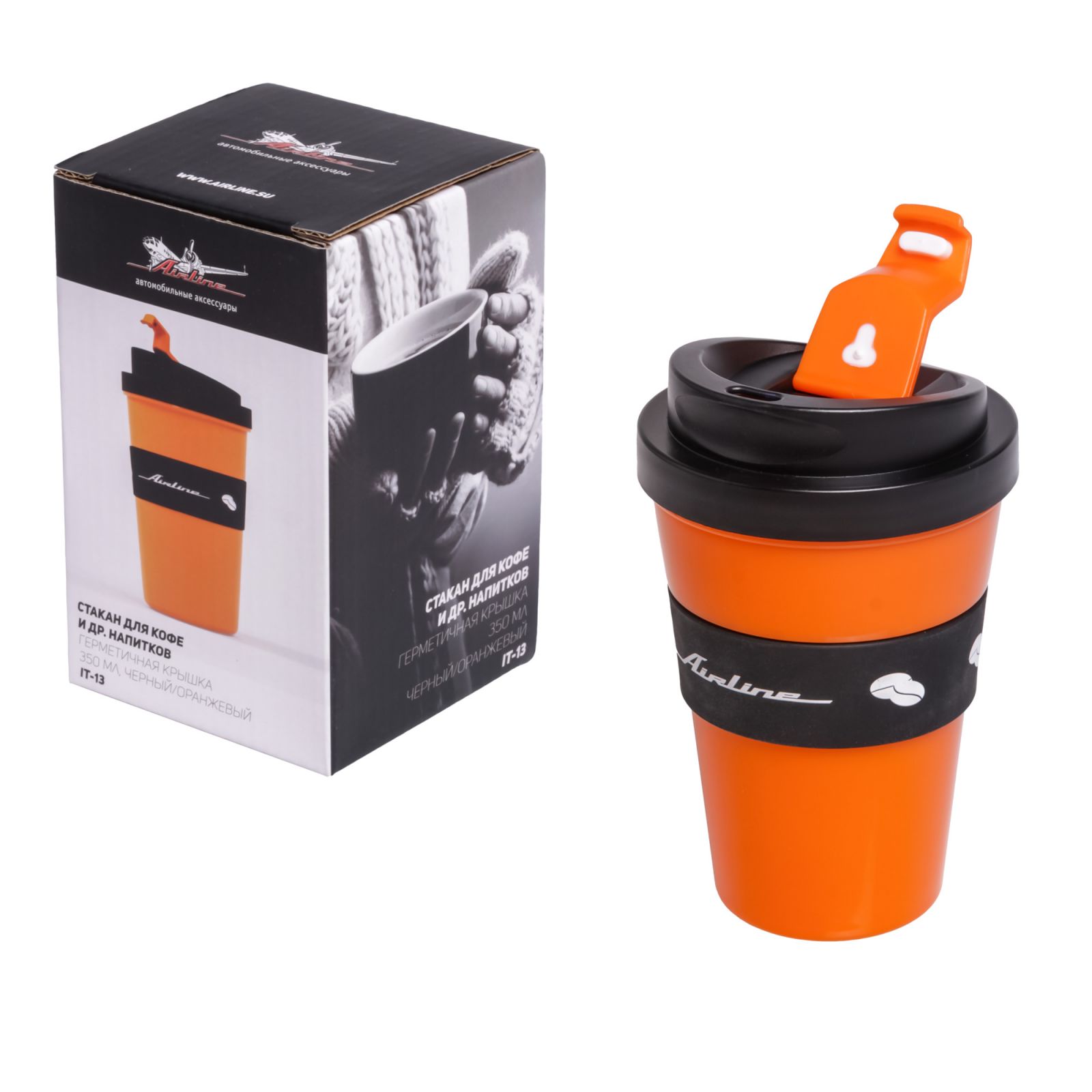 Кружка для кофе и др. напитков, герм. крышка, 350 мл., пластик, черн./оранж.(IT-13)