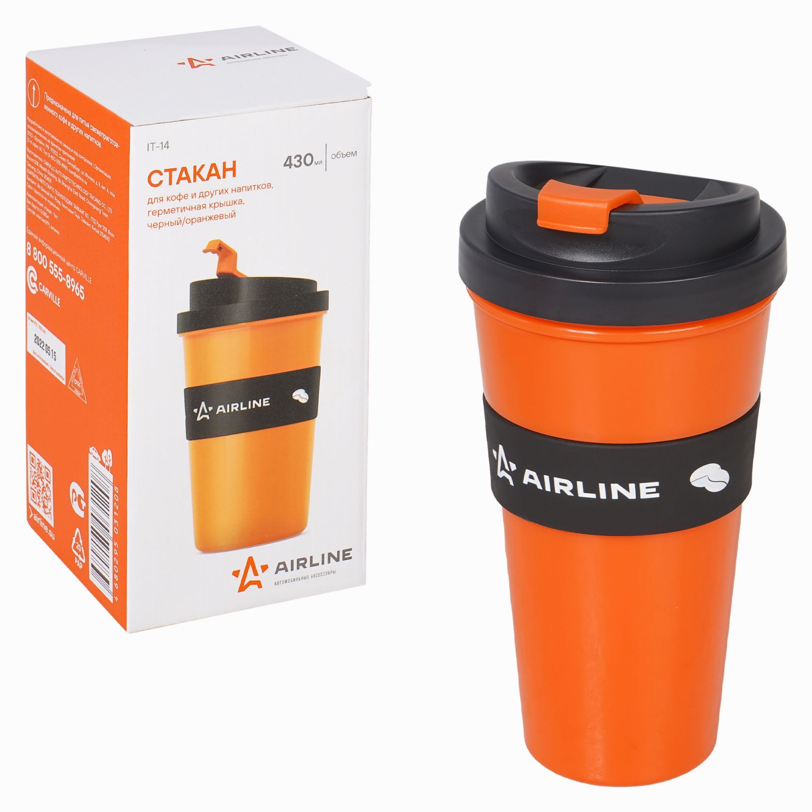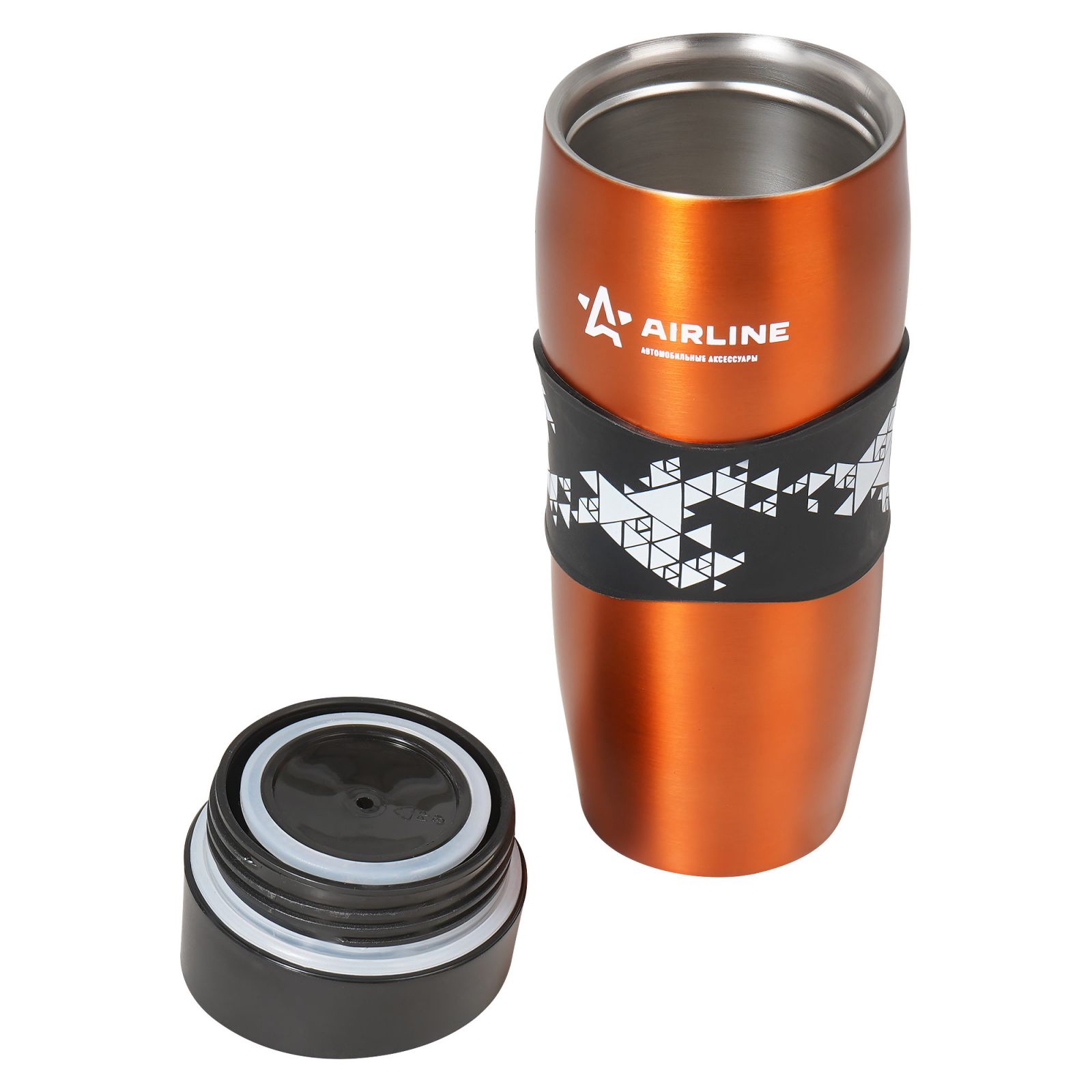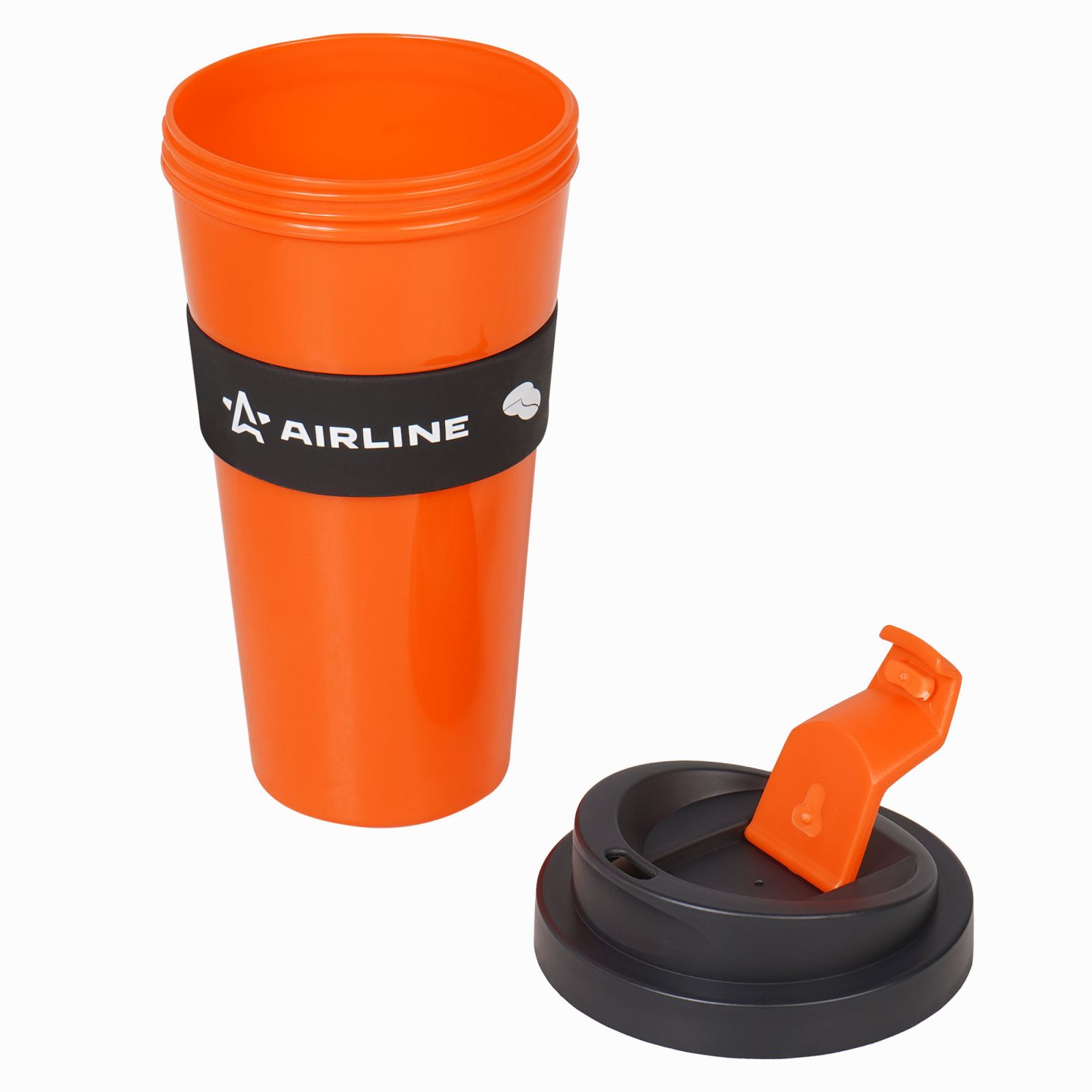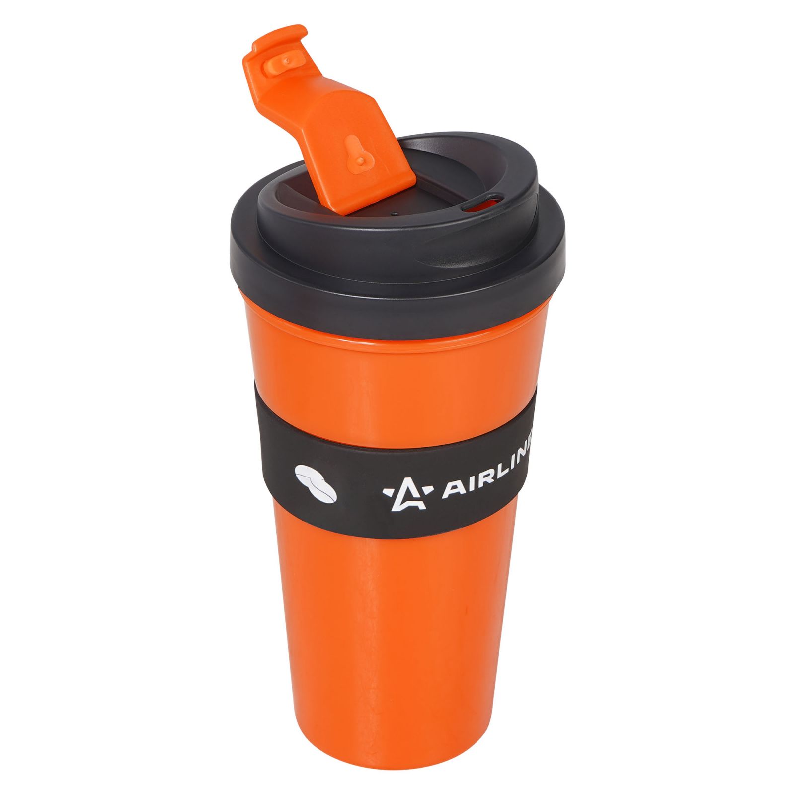 Кружка для кофе и др. напитков, герм. крышка, 430 мл., пластик, черн./оранж.(IT-14)