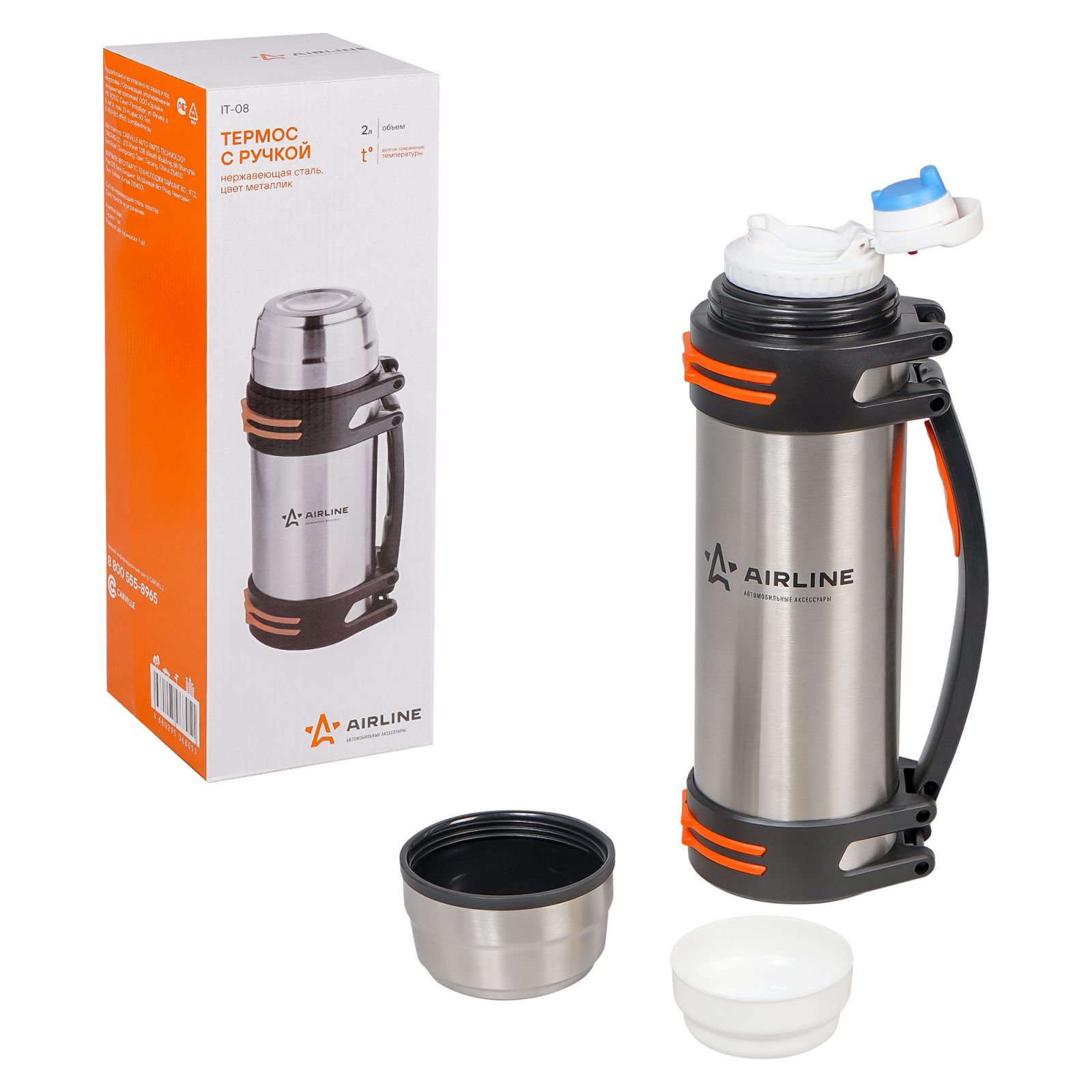 Термос с ручкой 2,0 л., нержавеющая сталь, цвет металлик (IT-08)