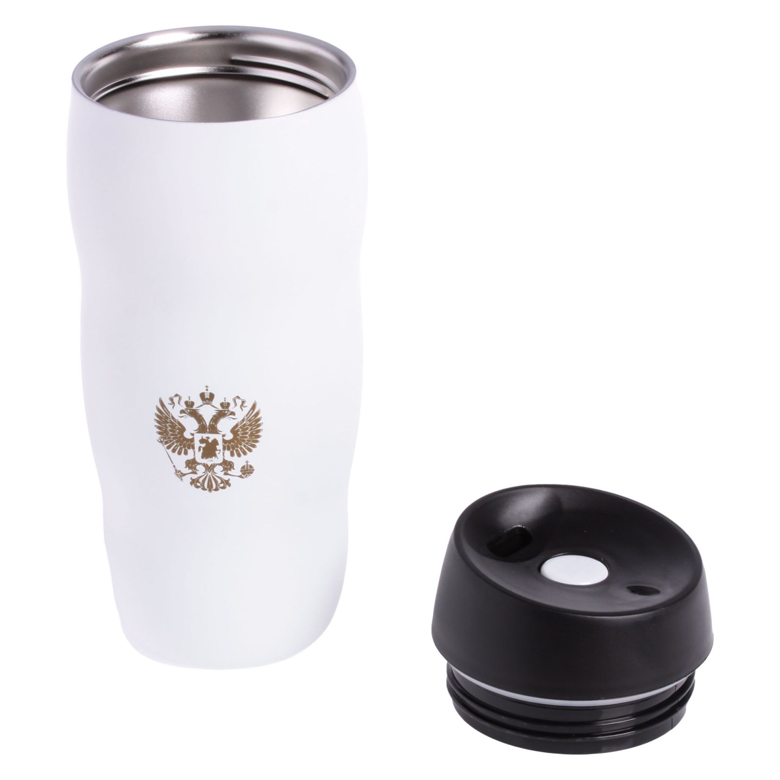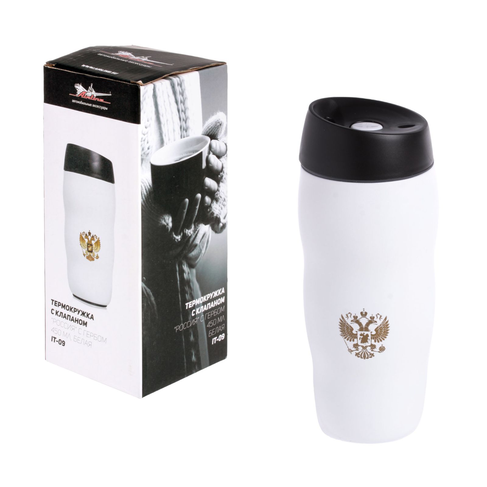 Термокружка c клапаном "РОССИЯ", с гербом, 450 мл., белая (IT-09)
