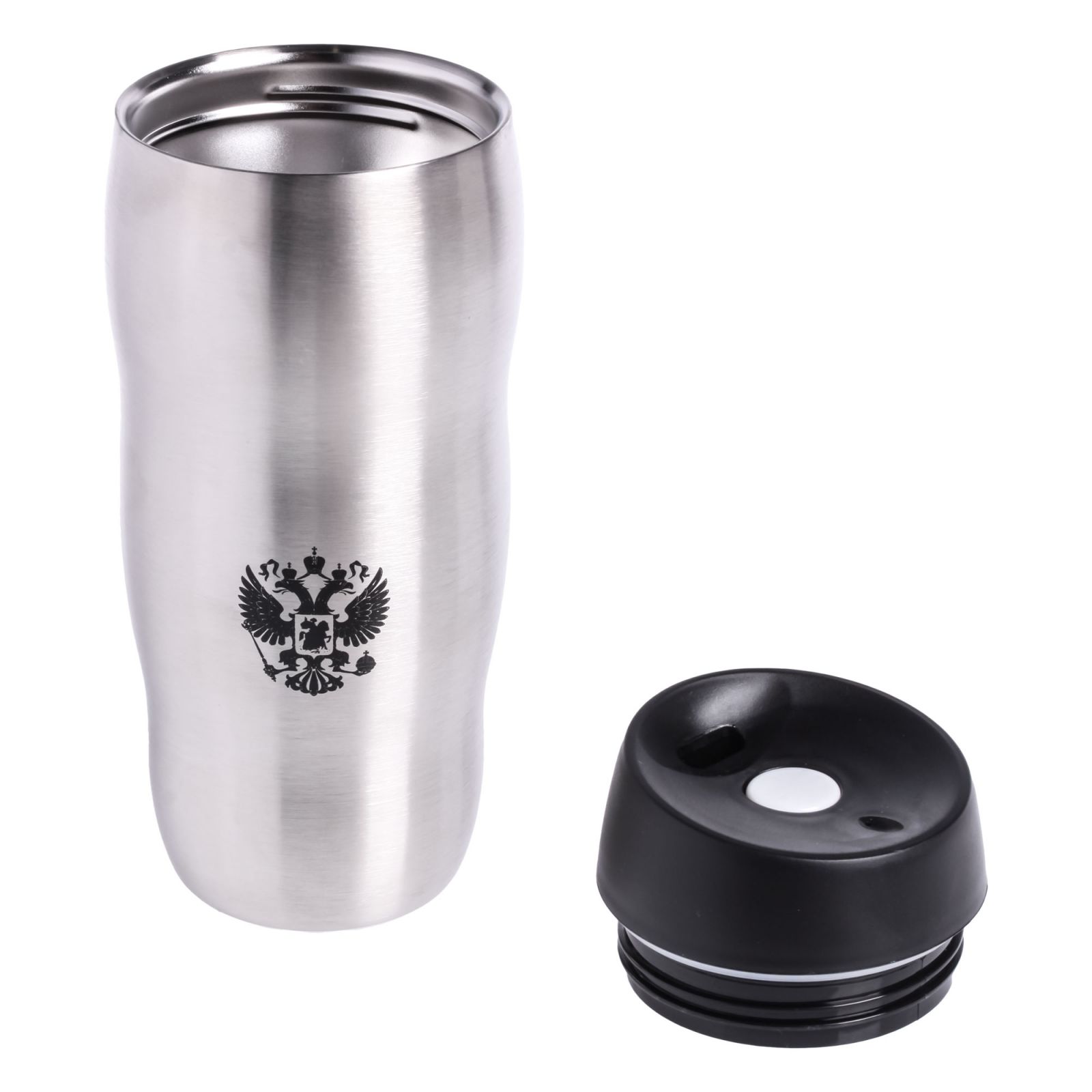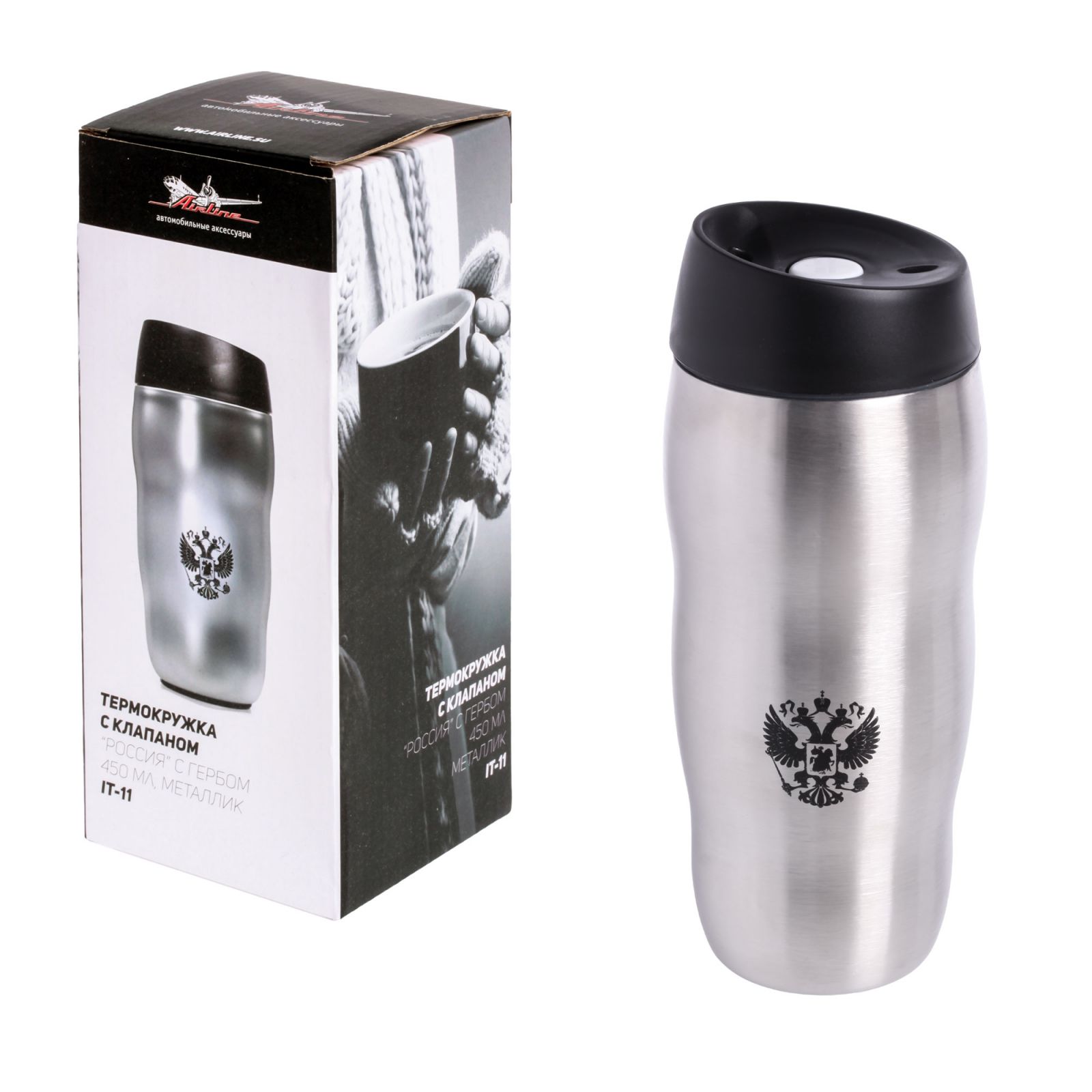 Термокружка c клапаном "РОССИЯ", с гербом, 450 мл., металлик (IT-11)