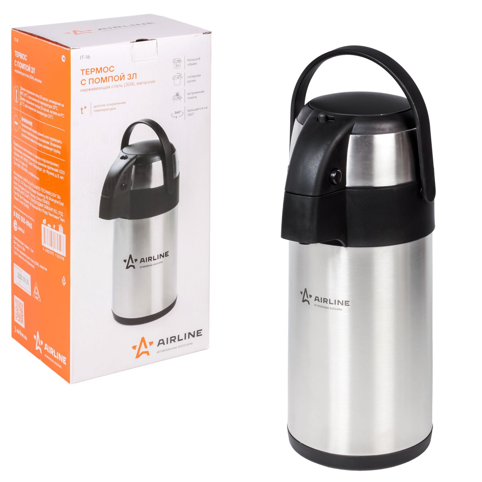 Термос с помпой 3,0 л., нержавеющая сталь (304), металлик (IT-16)