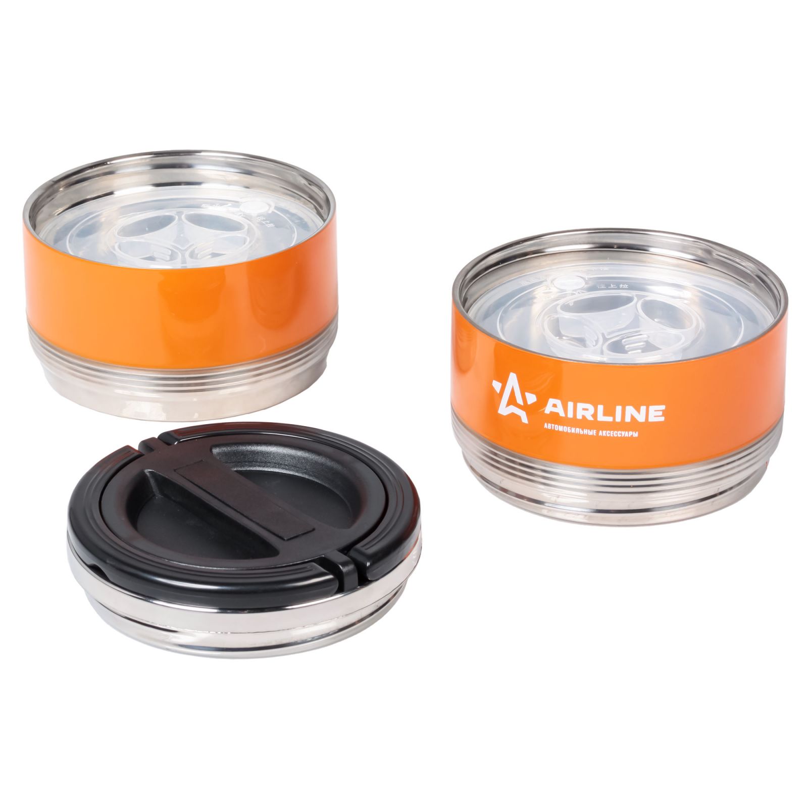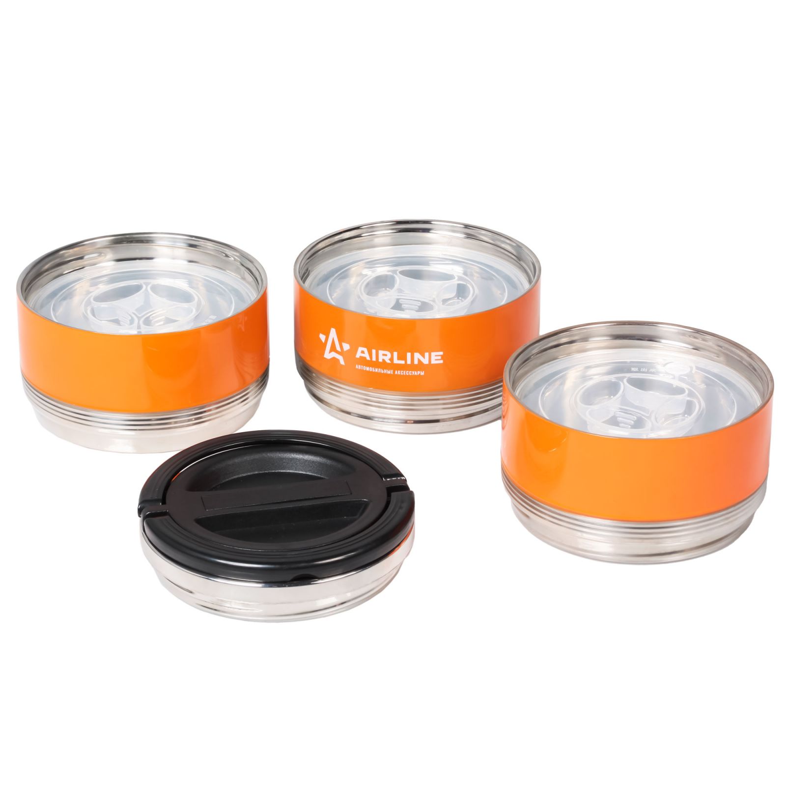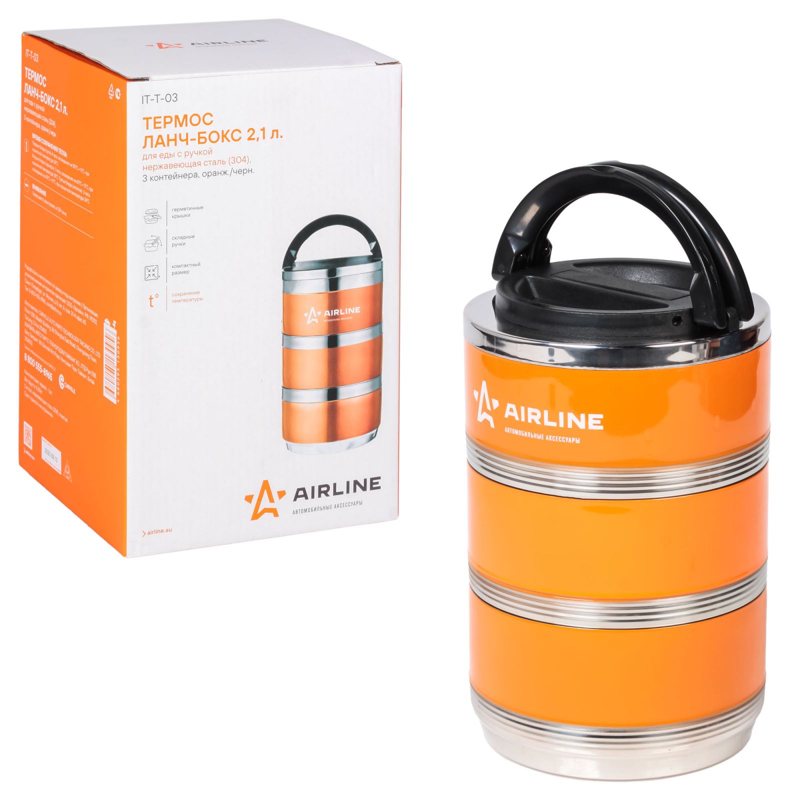 Ланч-бокс для еды с ручкой (термо), нерж. сталь (304), 3 контейнера, 2,1 л., оранж./черн. (IT-T-03)