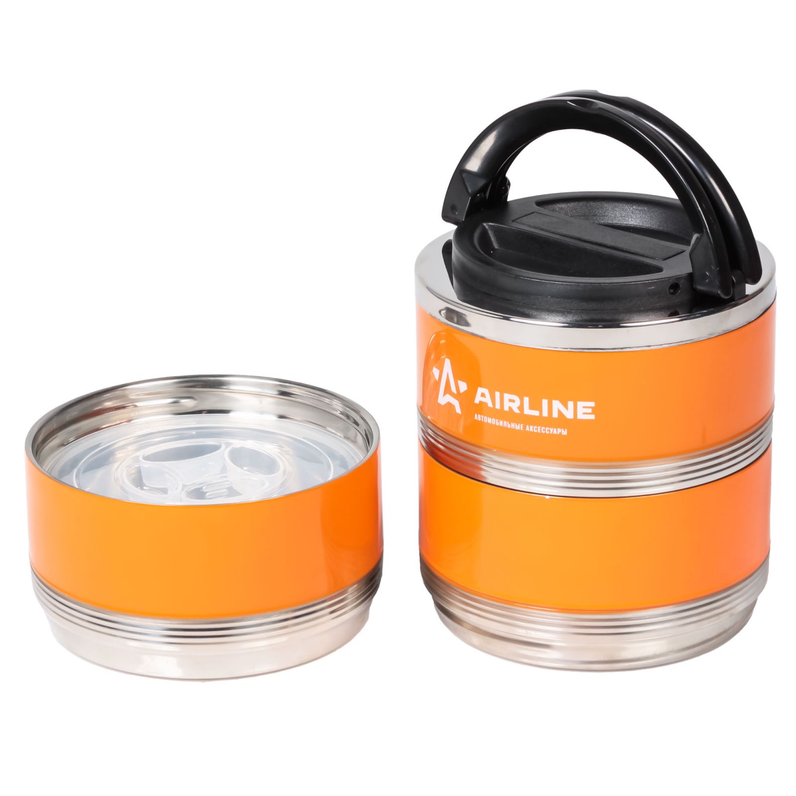 Ланч-бокс для еды с ручкой (термо), нерж. сталь (304), 2 контейнера, 1,4 л., оранж./черн. (IT-T-02)