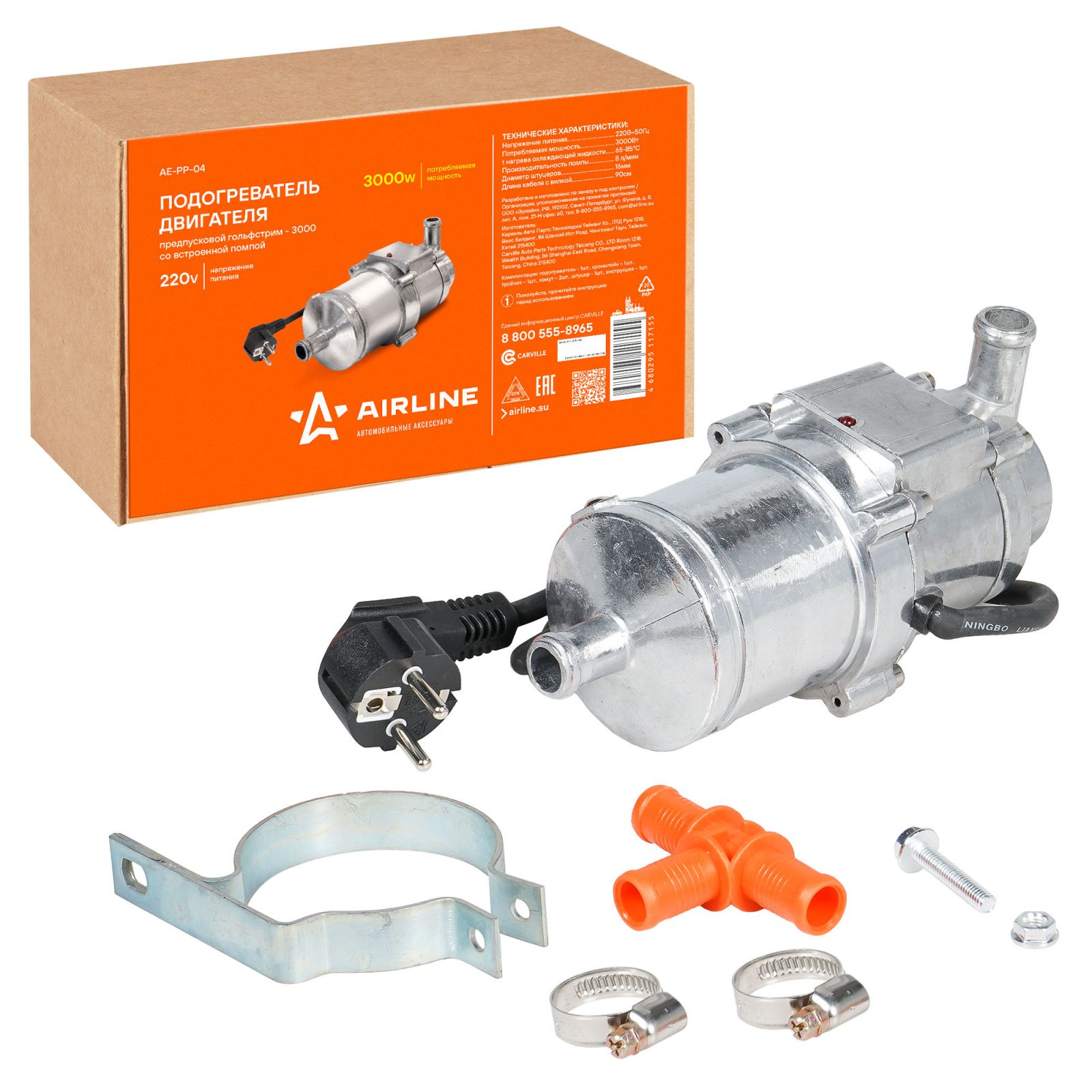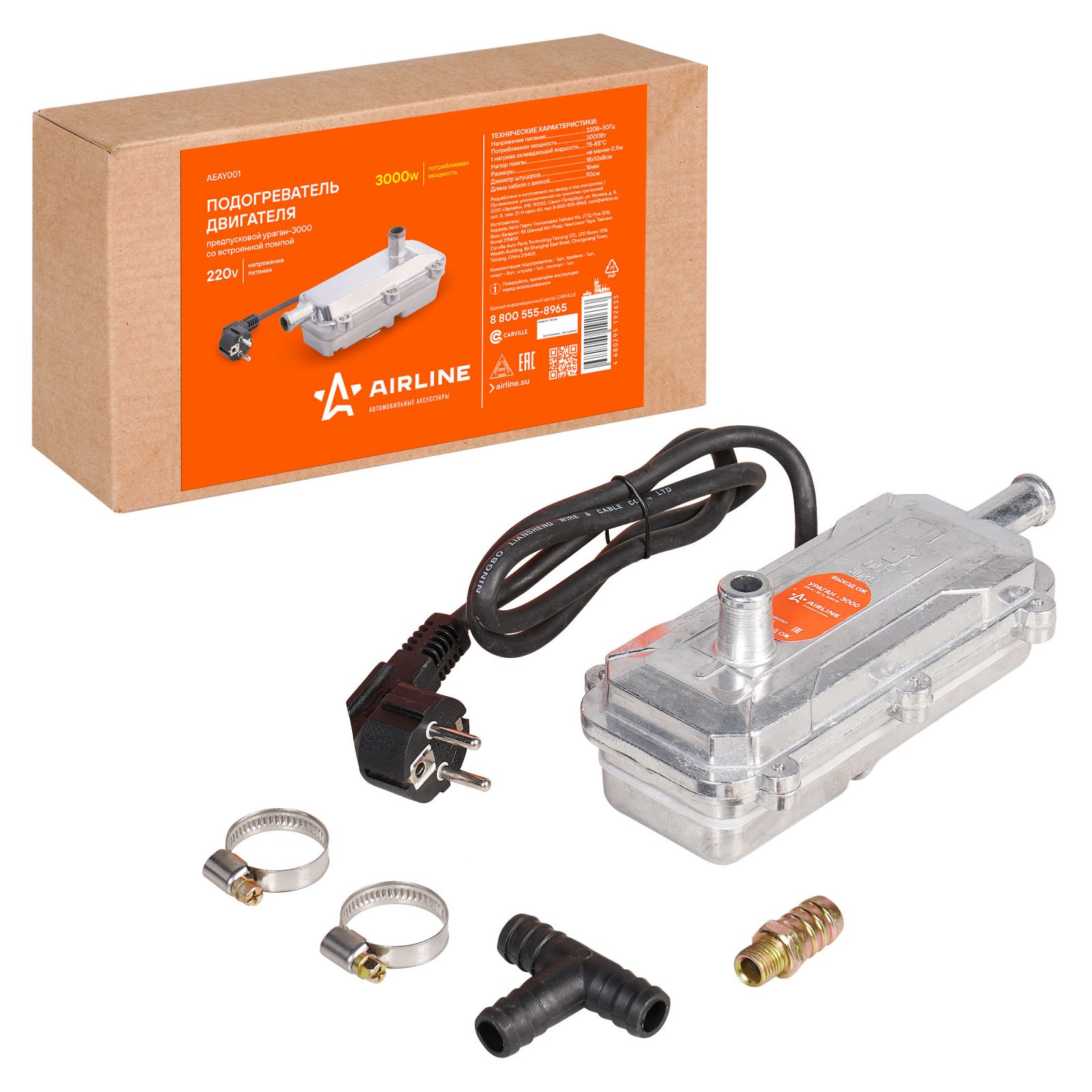 Подогреватель двигателя предпусковой УРАГАН-3000 с встроенной помпой 220В 3000Вт (AEAY001)