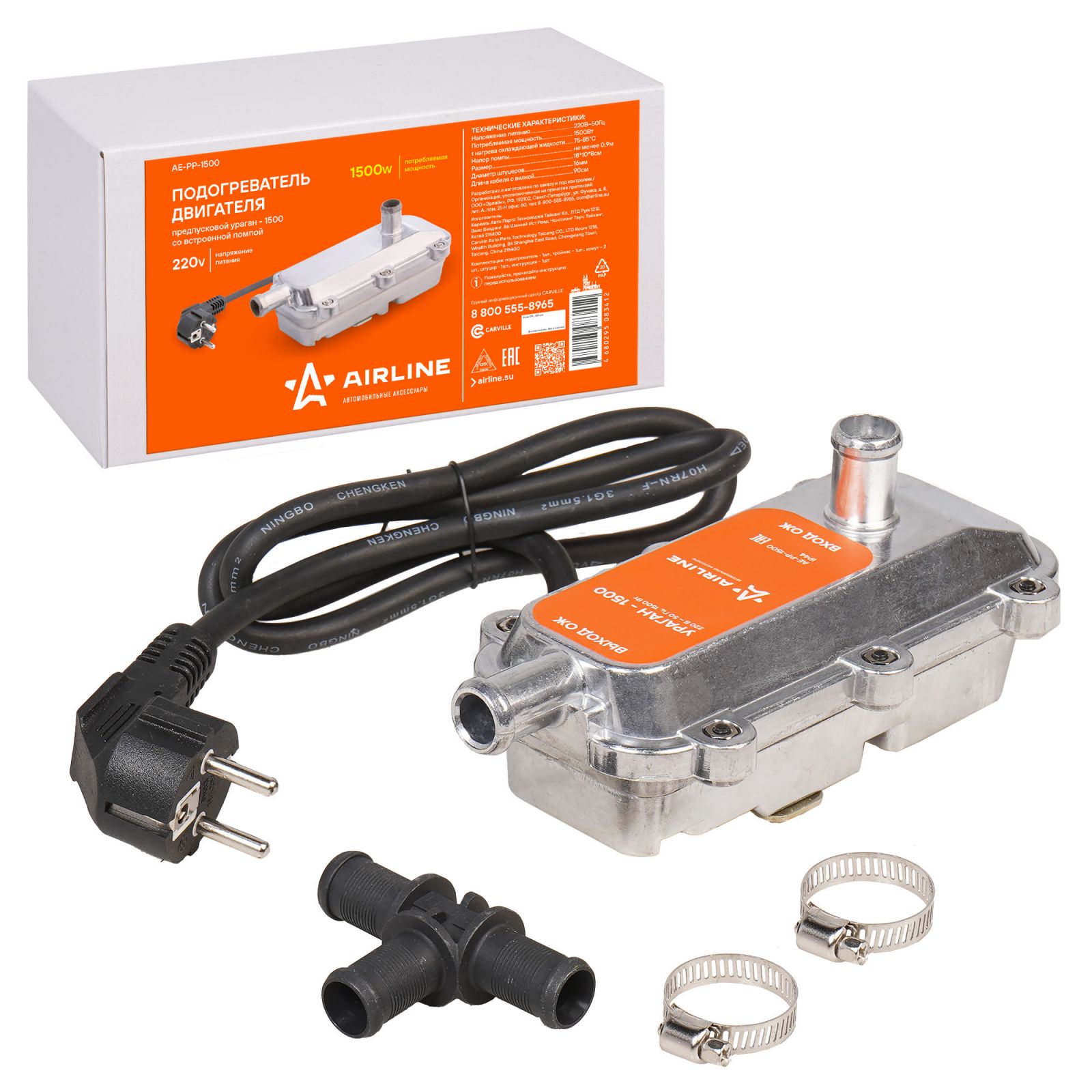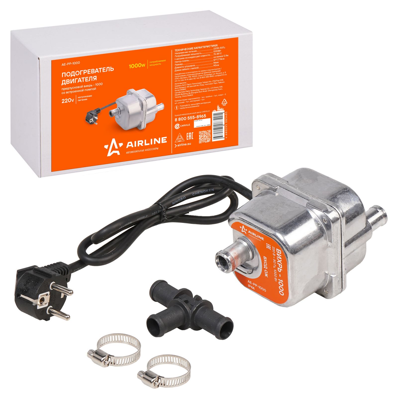 Подогреватель двигателя предпусковой УРАГАН-1500 с встроенной помпой 220В 1500Вт (AE-PP-1500)