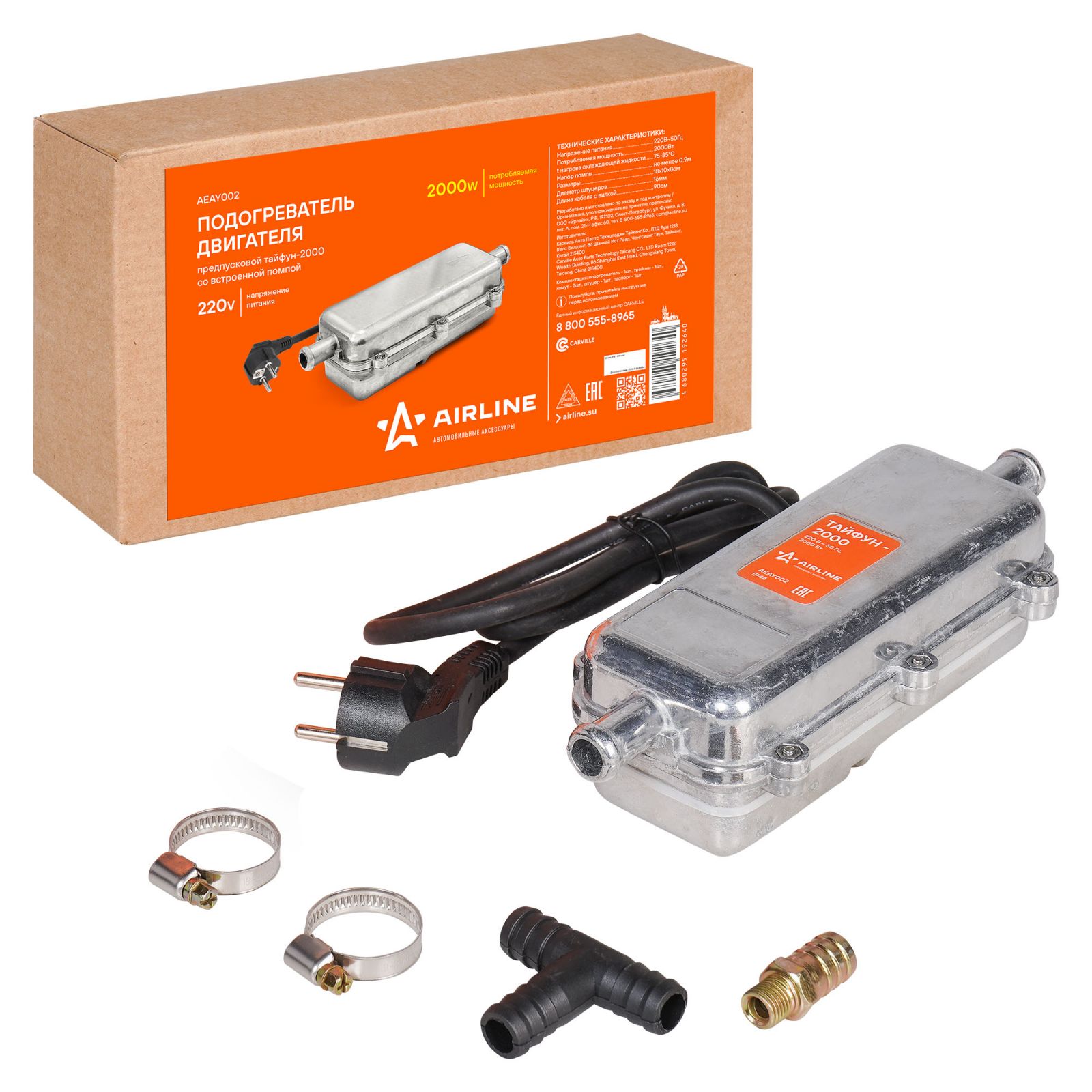 Подогреватель двигателя предпусковой ТАЙФУН-2000 с встроенной помпой 220В 2000Вт (AEAY002)