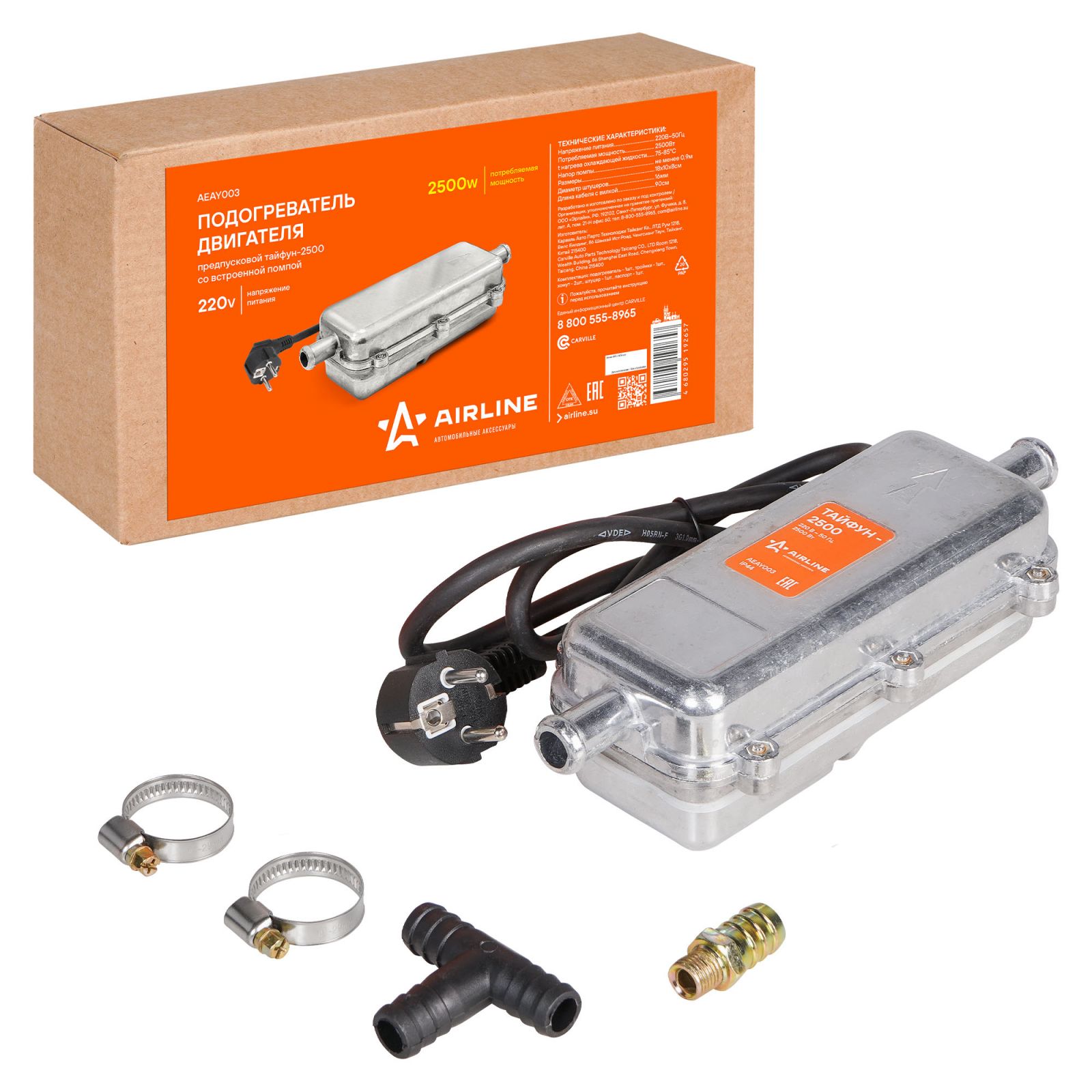 Подогреватель двигателя предпусковой ТАЙФУН-2500 с встроенной помпой 220В 2500Вт (AEAY003)