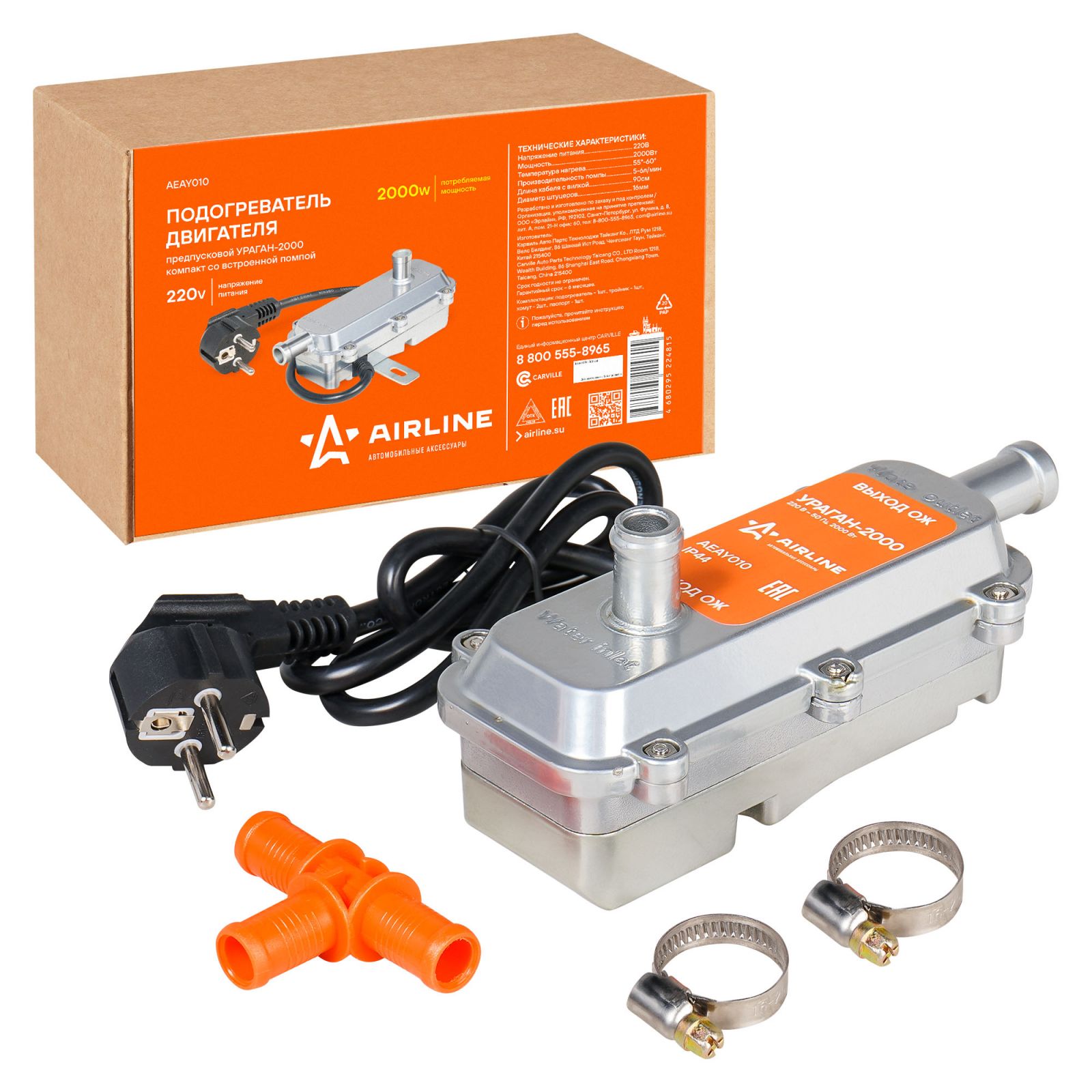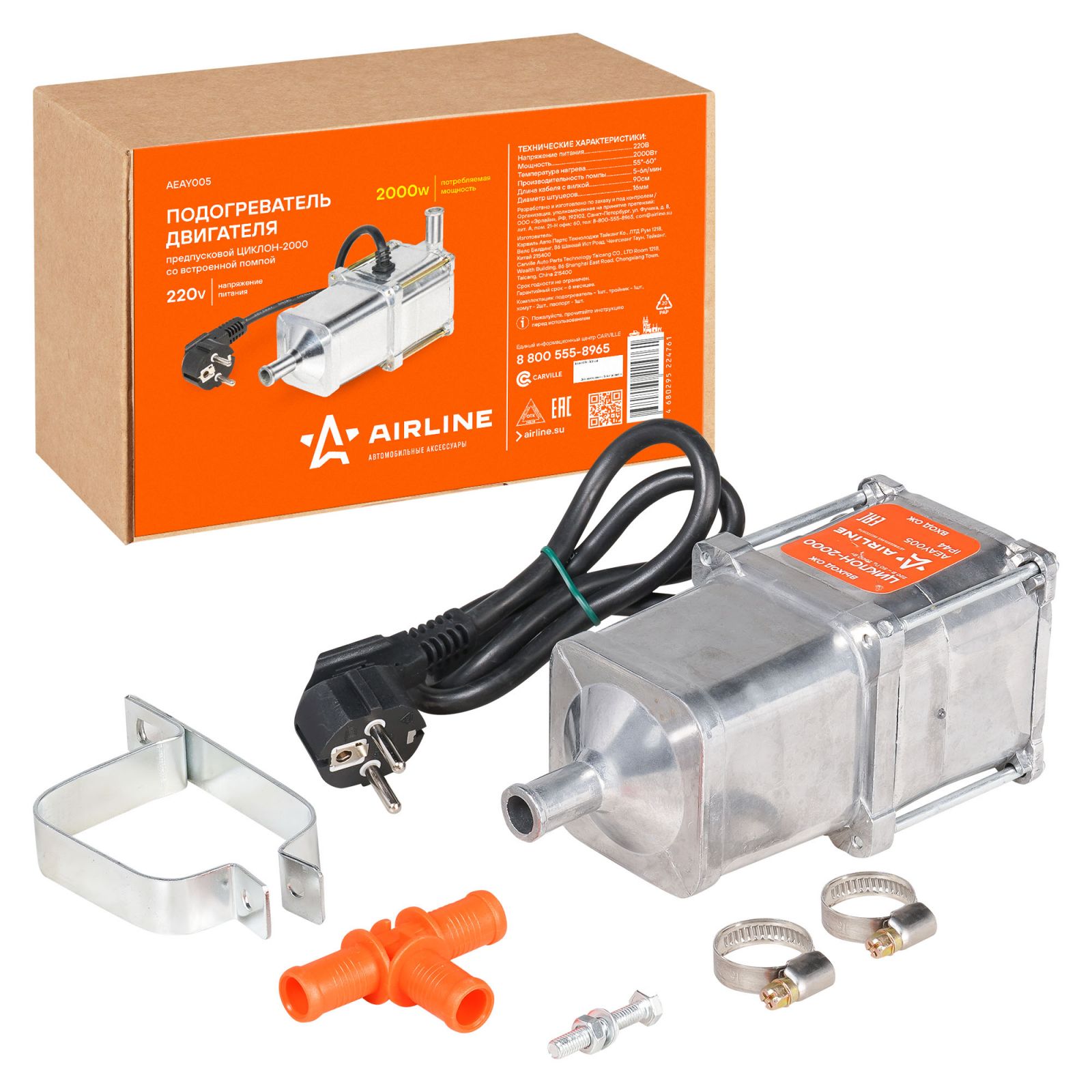 Подогреватель двигателя предпусковой УРАГАН-2000 компакт с встроенной помпой 220В 2000Вт (AEAY010)