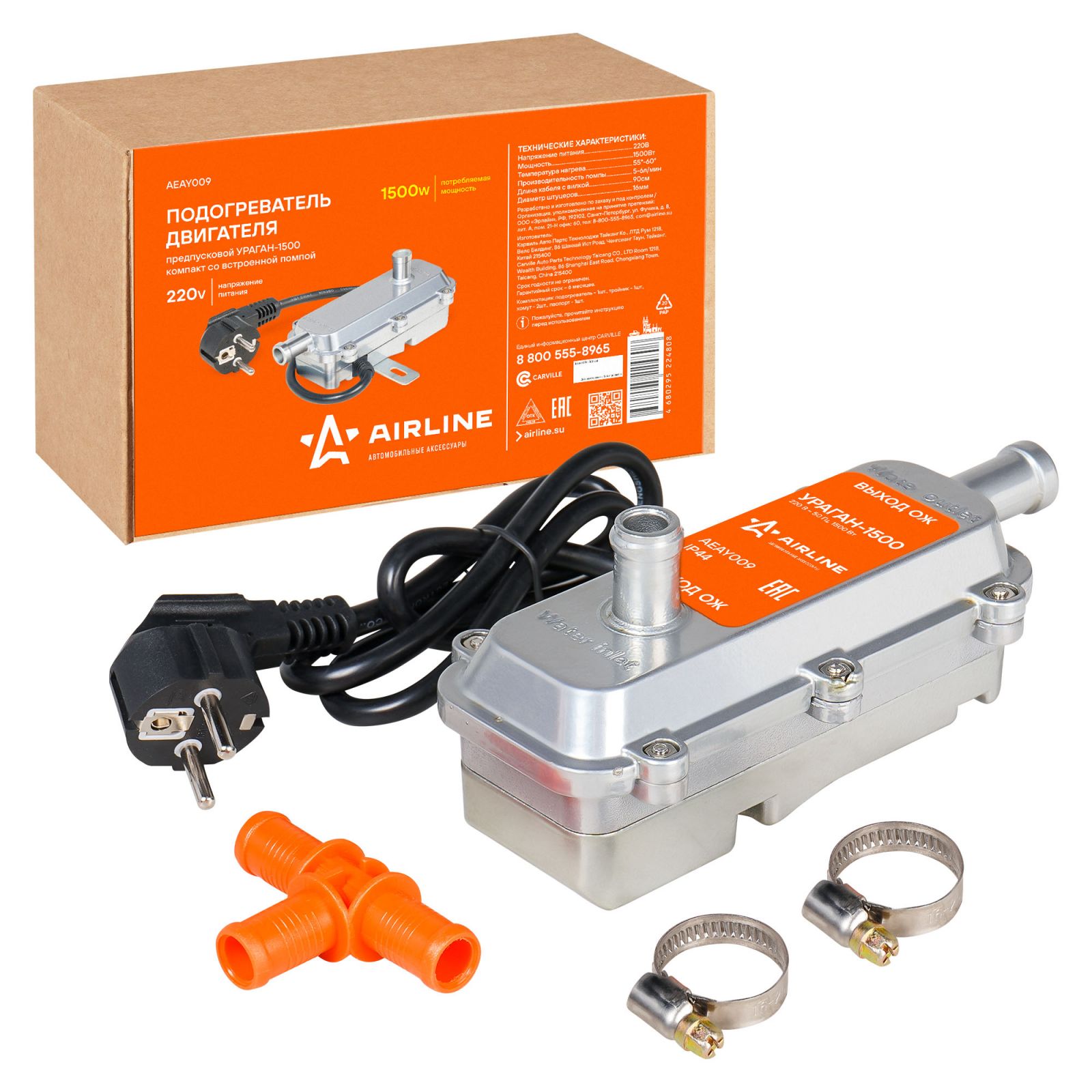Подогреватель двигателя предпусковой УРАГАН-1500 компакт с встроенной помпой 220В 1500Вт (AEAY009)