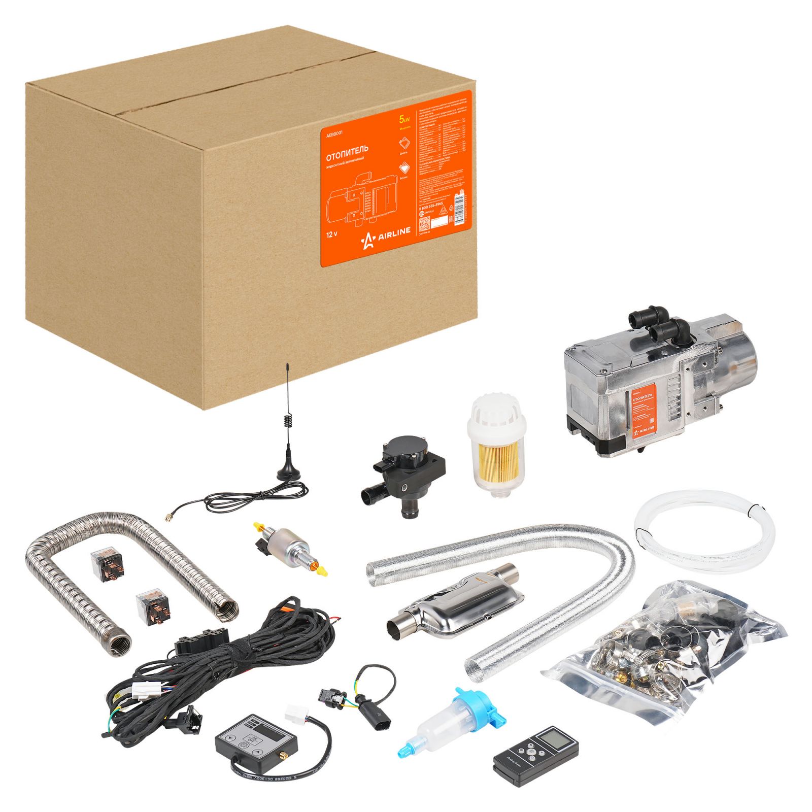 Отопитель жидкостный автономный 12В 5КВт универсальный бензин/дизель (AEBB001)
