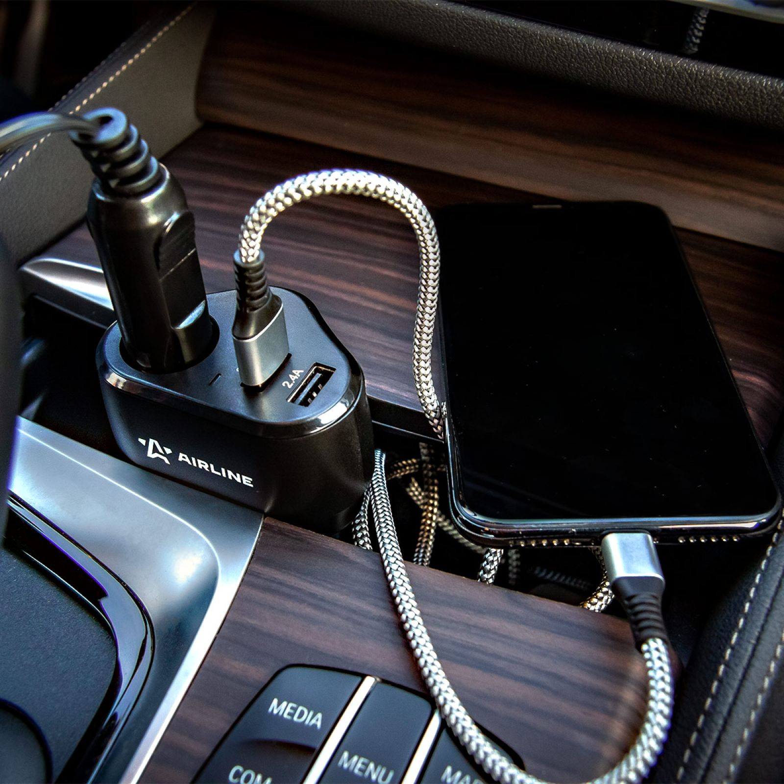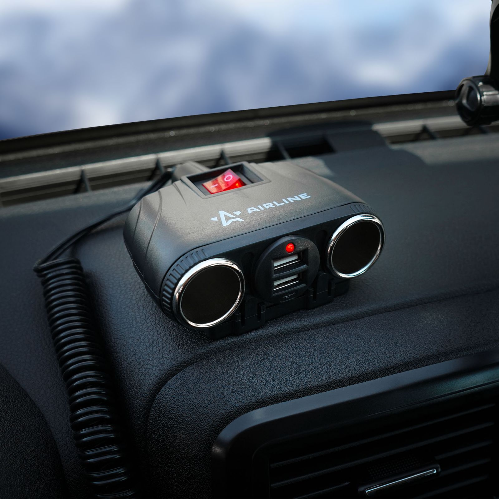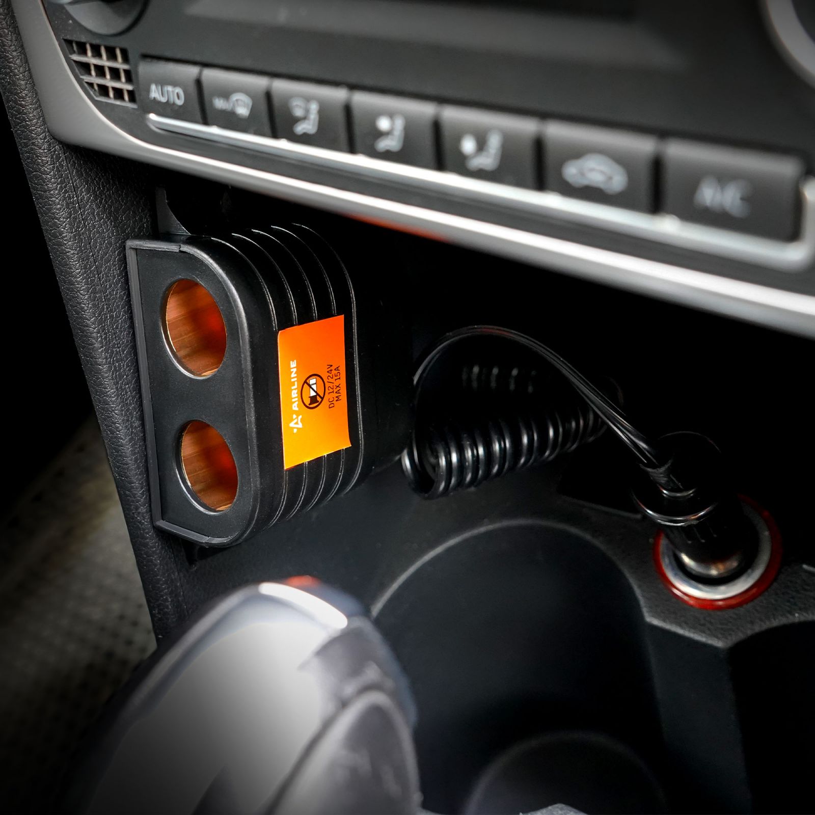 Разветвитель прикуривателя 2 гнезда 15А, витой шнур (ASP-15A-10)