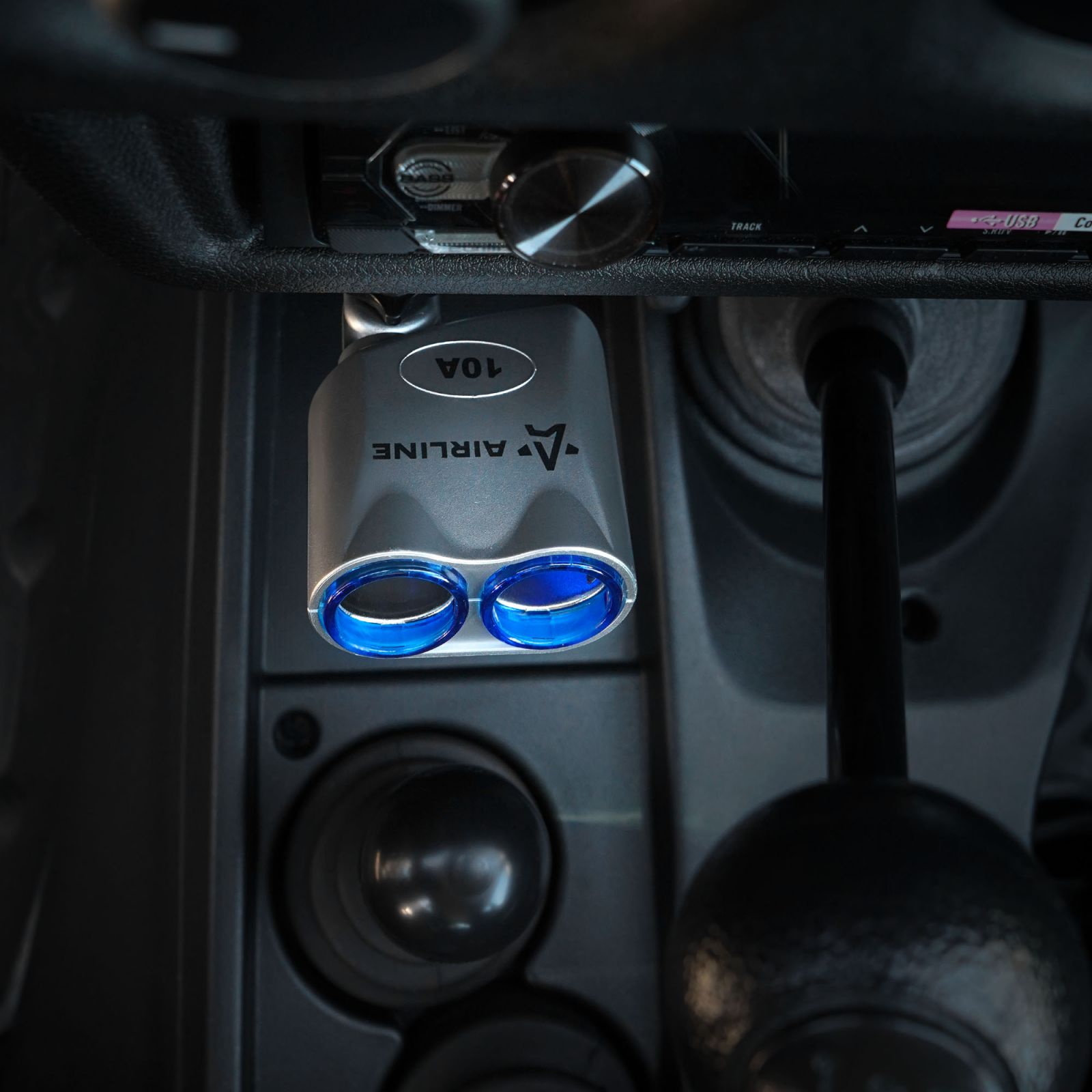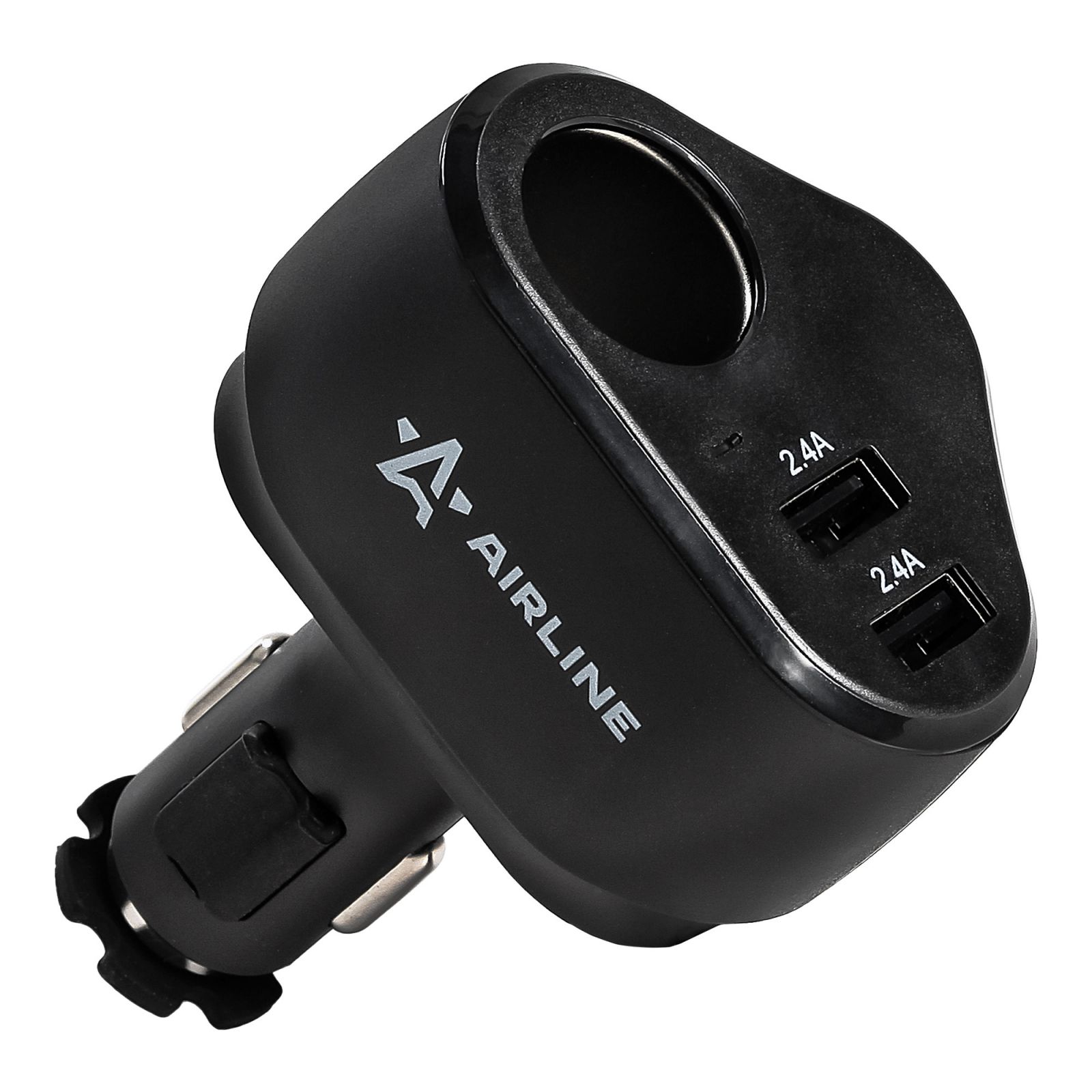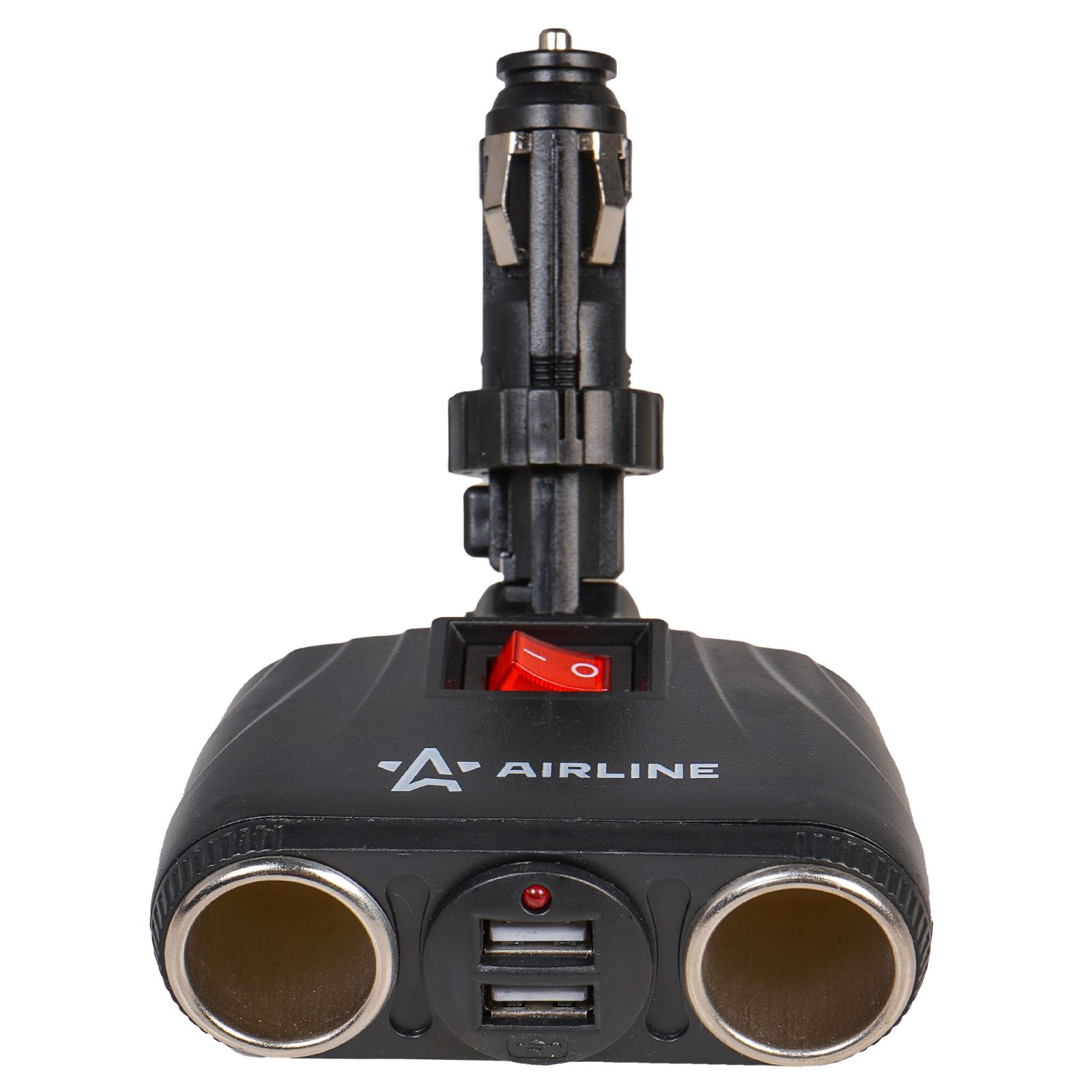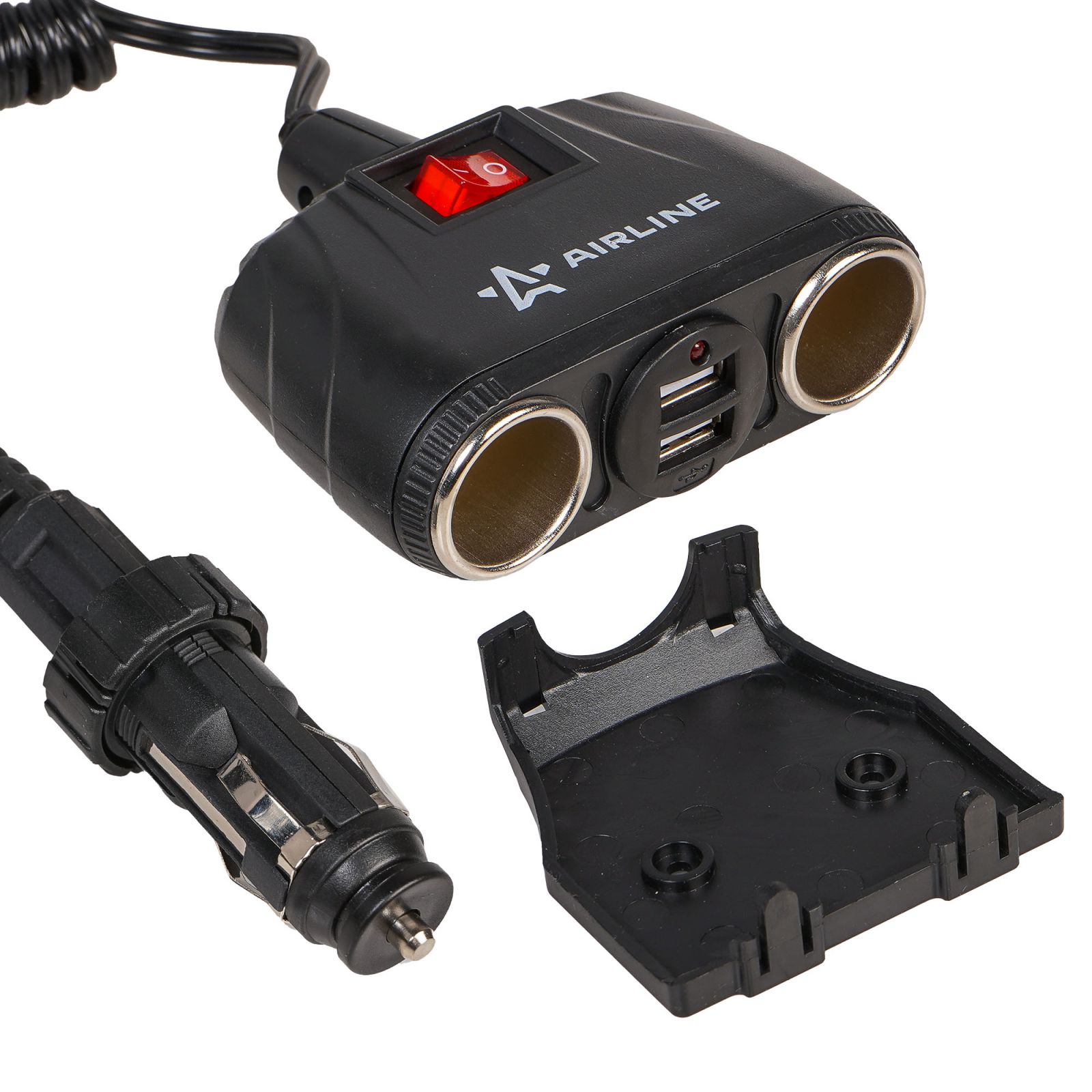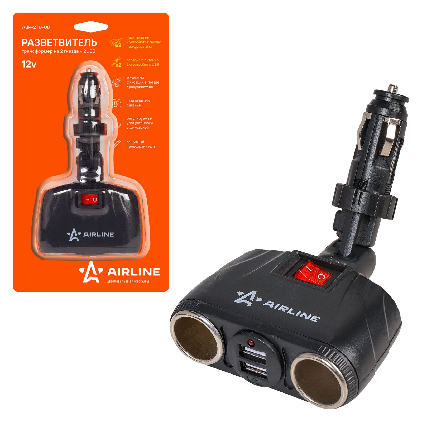 Разветвитель прикуривателя трансформер 2 гнезда 8А + 2USB, штекер-фиксатор (ASP-2TU-08)