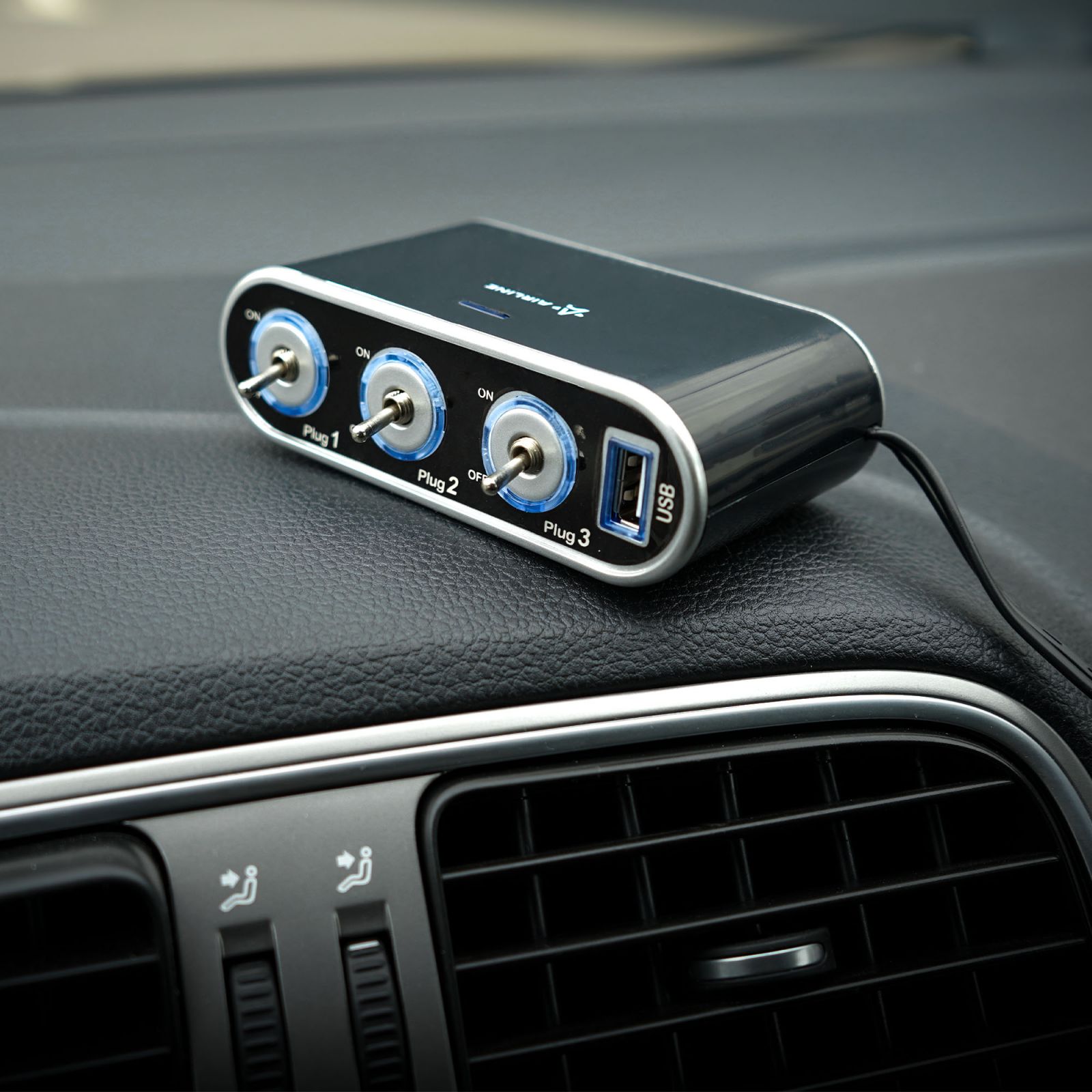 Разветвитель прикуривателя 3 гнезда 5А + USB 1A, с выключателями нагрузки (ASP-3S-15)