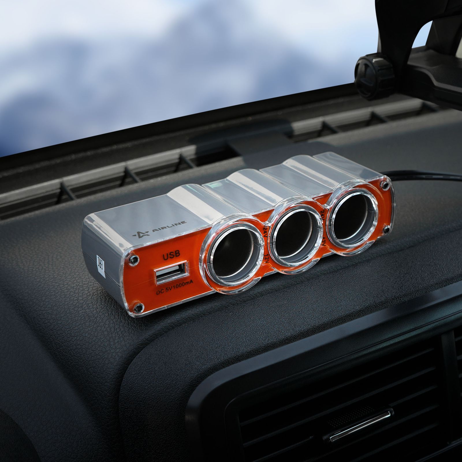 Разветвитель прикуривателя 3 гнезда 5А + USB (оранжевый) (ASP-3U-03)
