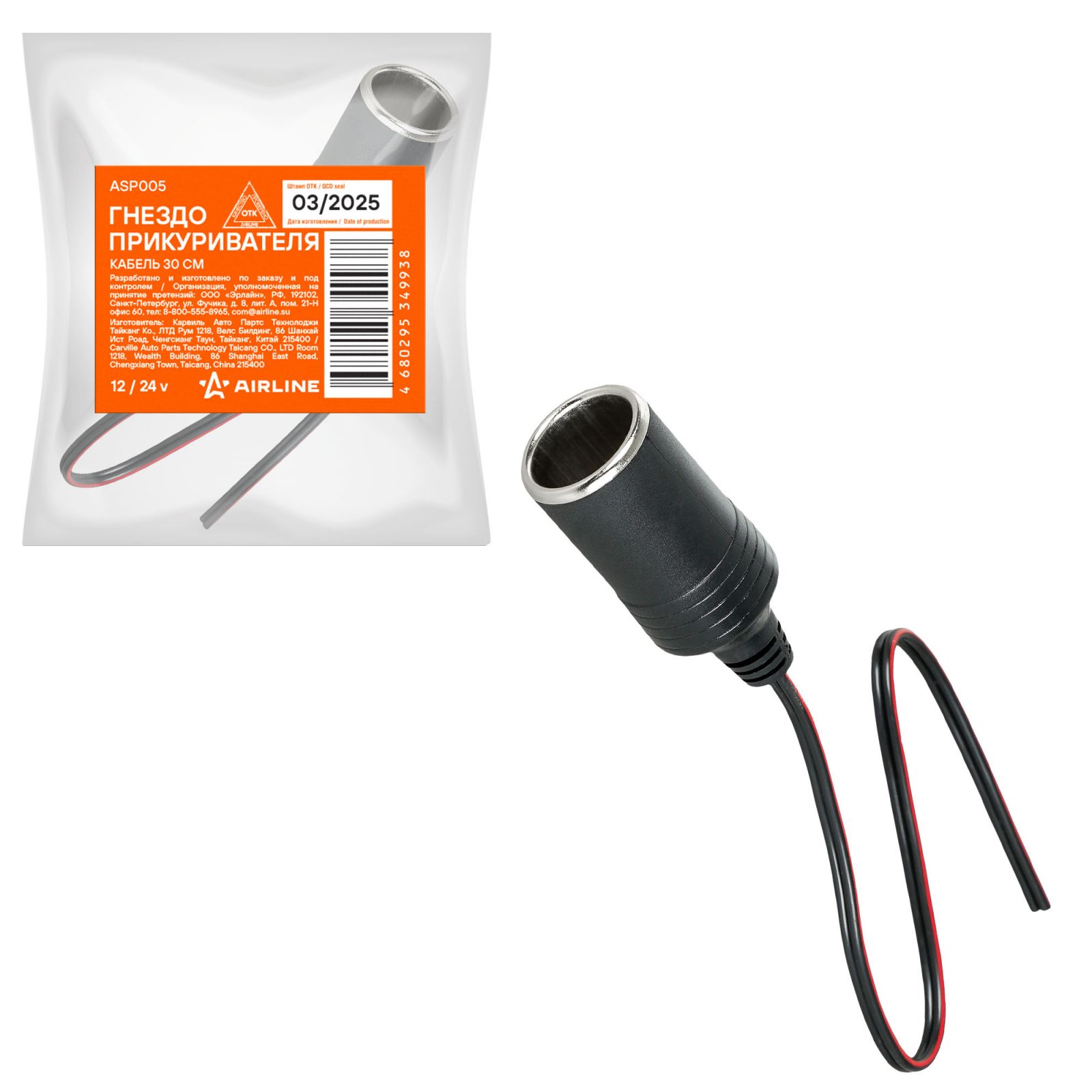 Гнездо прикуривателя, кабель 30 см (ASP005)