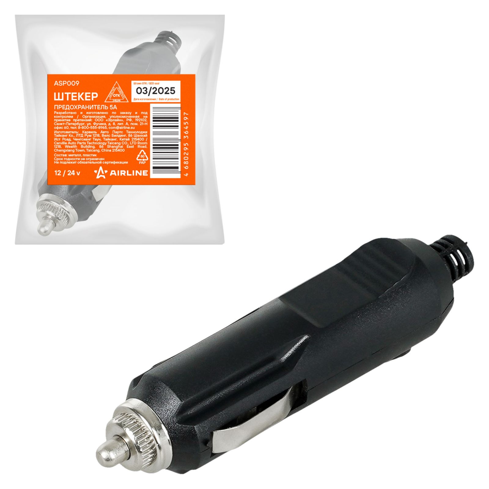 Штекер 12/24В, предохранитель 5А (ASP009)