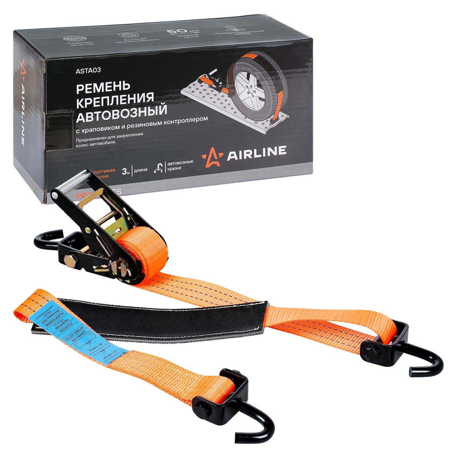 Ремень крепления автовозный с храповиком и резиновым контроллером 4 т, 3 м (ASTA03)
