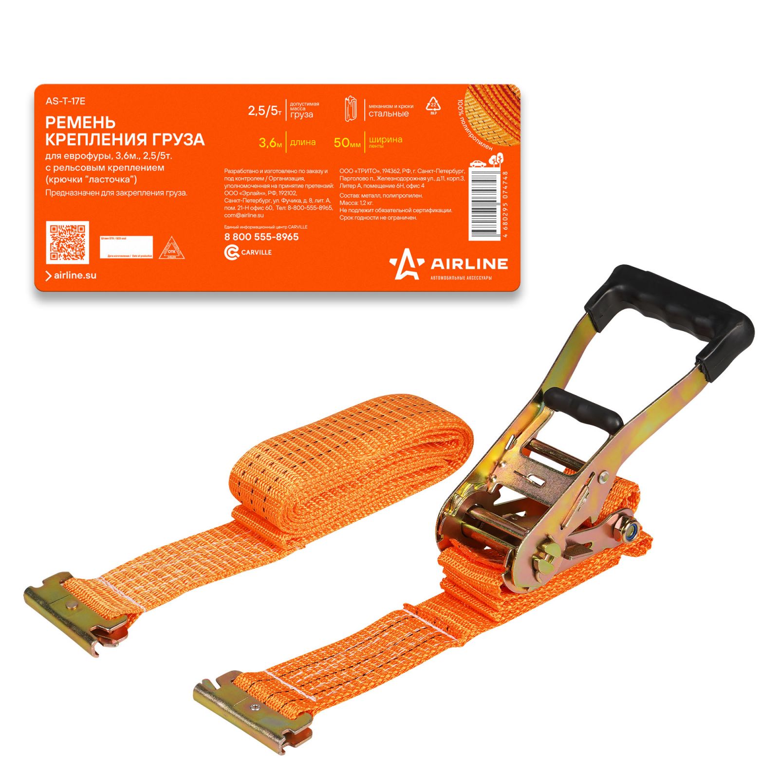 Ремень крепления груза для ЕВРОФУРЫ 2,5/5 т, 3,6 м, ширина 50 мм, с рельсовым креплением (крючки "ласточка") (AS-T-17E)