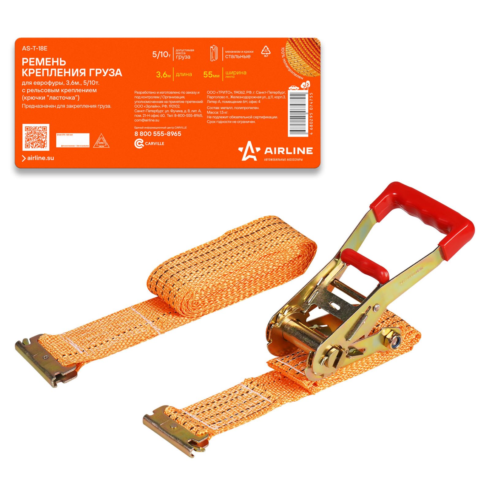 Ремень крепления груза для ЕВРОФУРЫ 5/10 т, 3,6 м, ширина 55 мм, с рельсовым креплением (крючки "ласточка") (AS-T-18E)