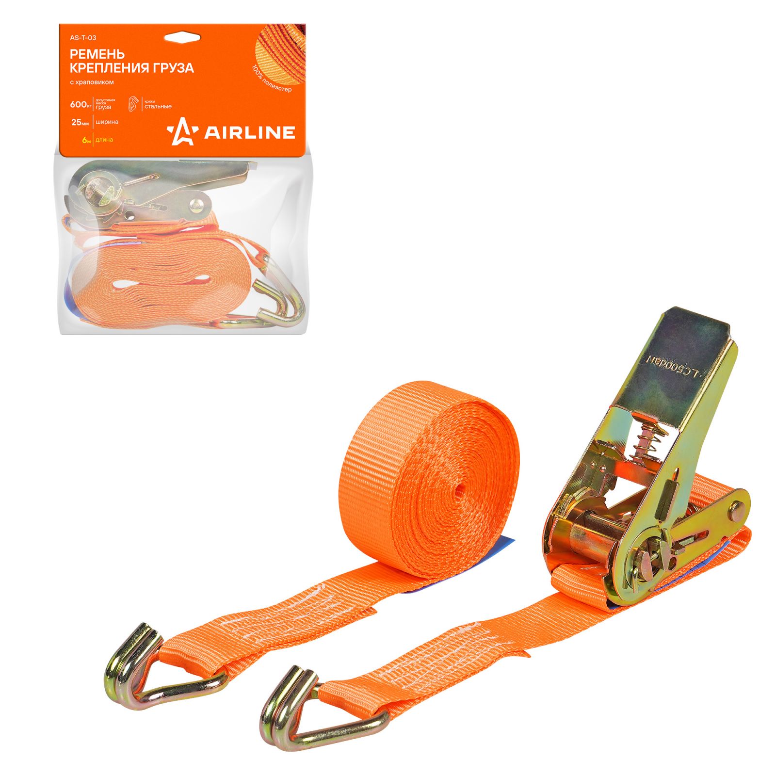 Ремень крепления груза с храповиком 600 кг, 6 м (AS-T-03)
