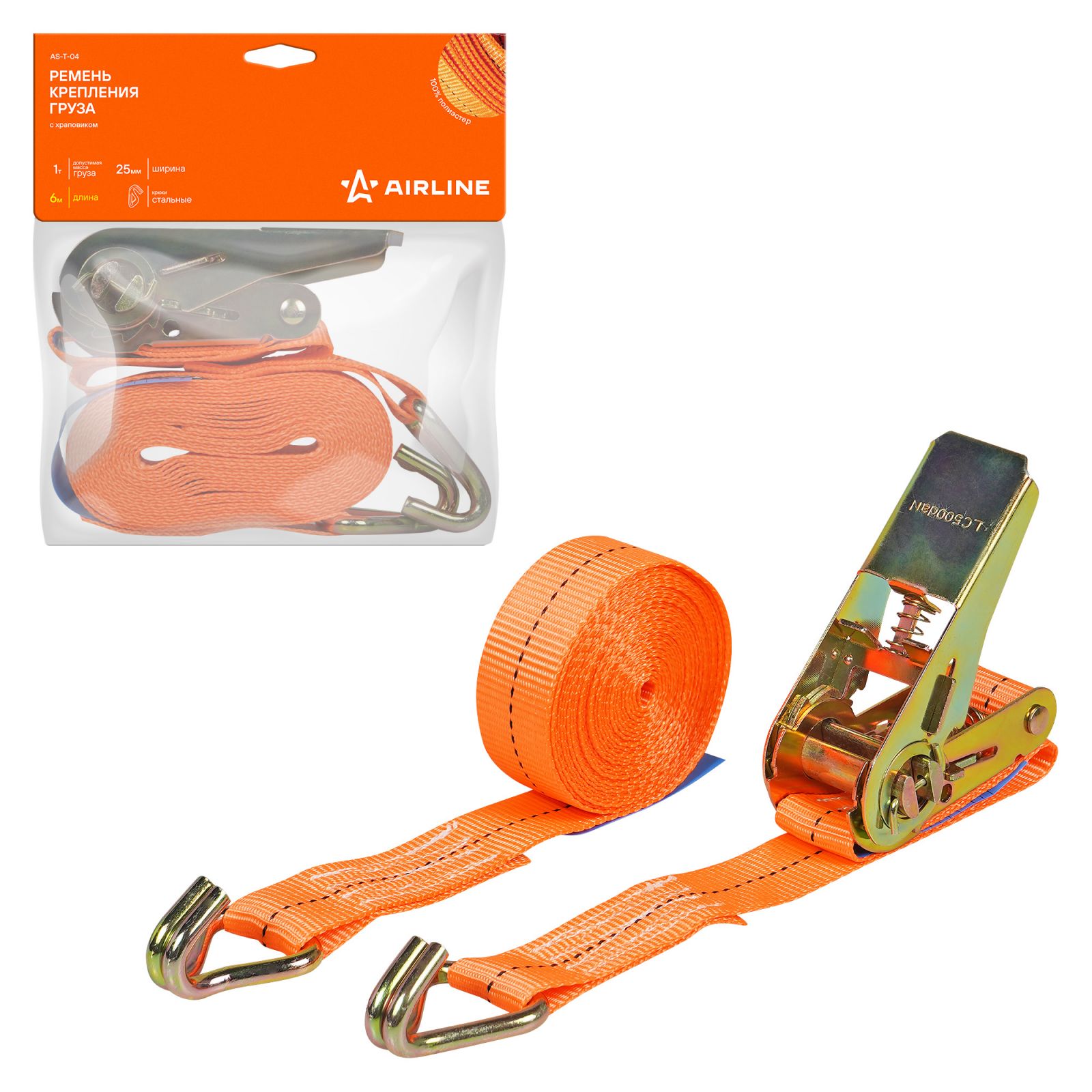 Ремень крепления груза с храповиком 1 т, 6 м (AS-T-04)