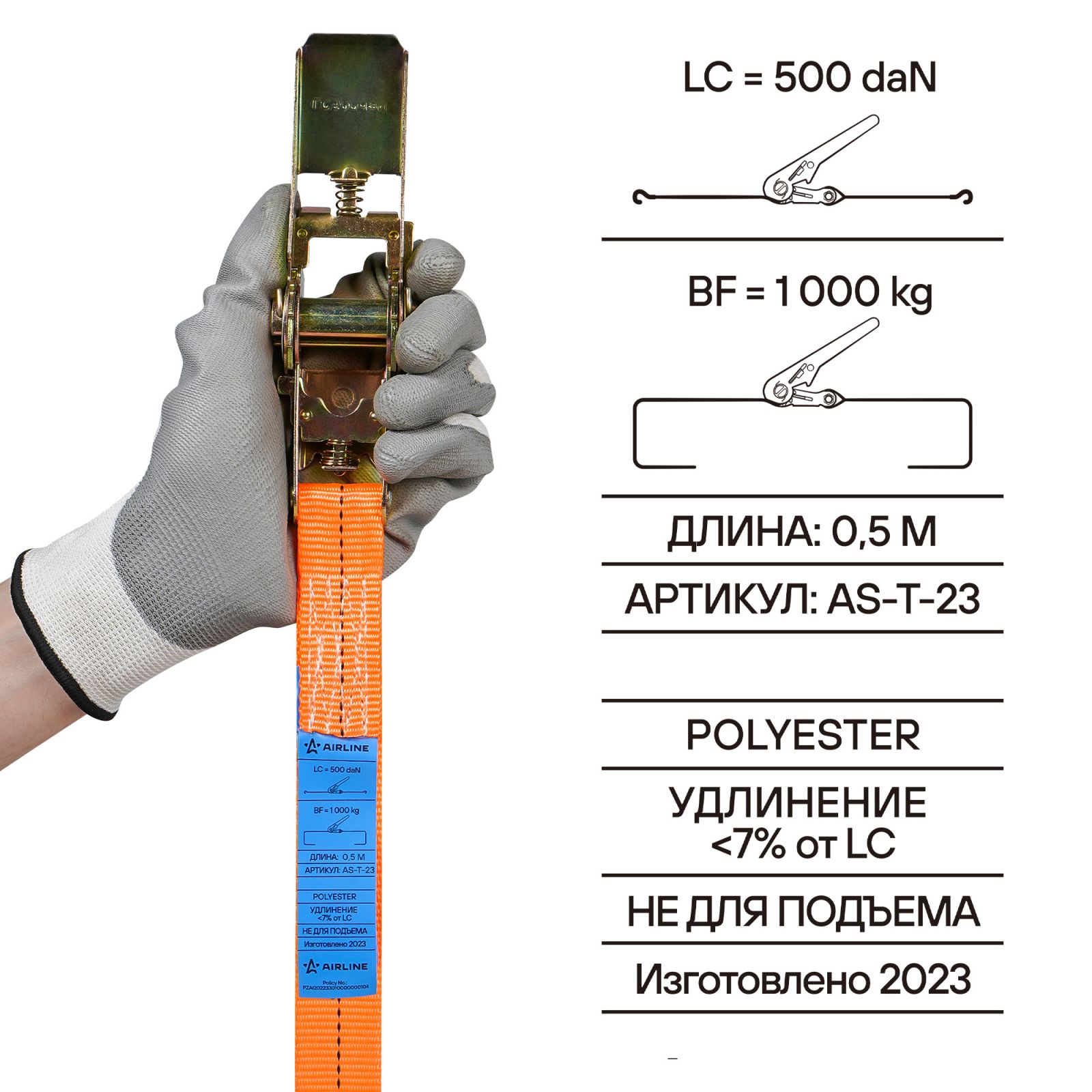 Ремень крепления груза с храповиком 1 т, 8 м (AS-T-23)