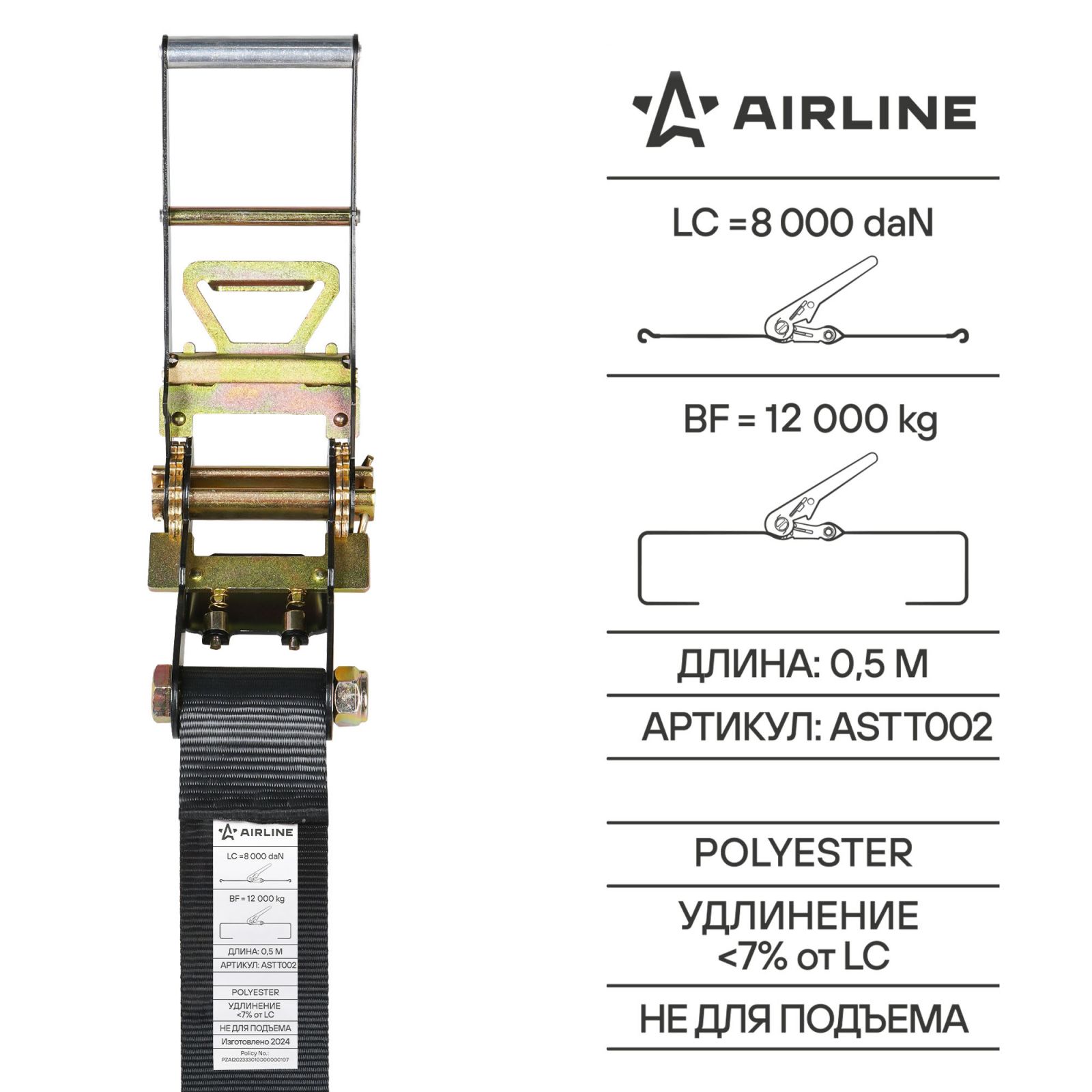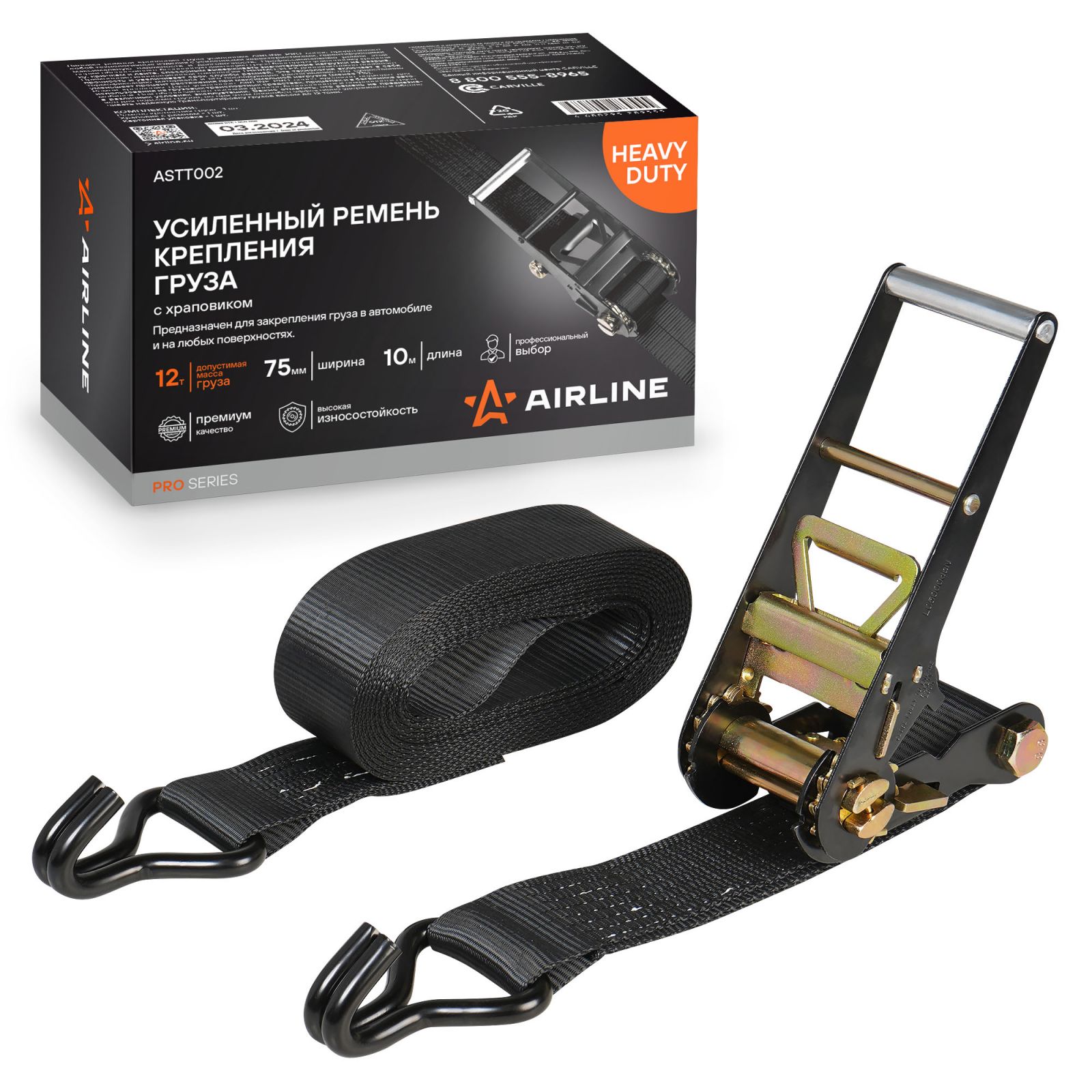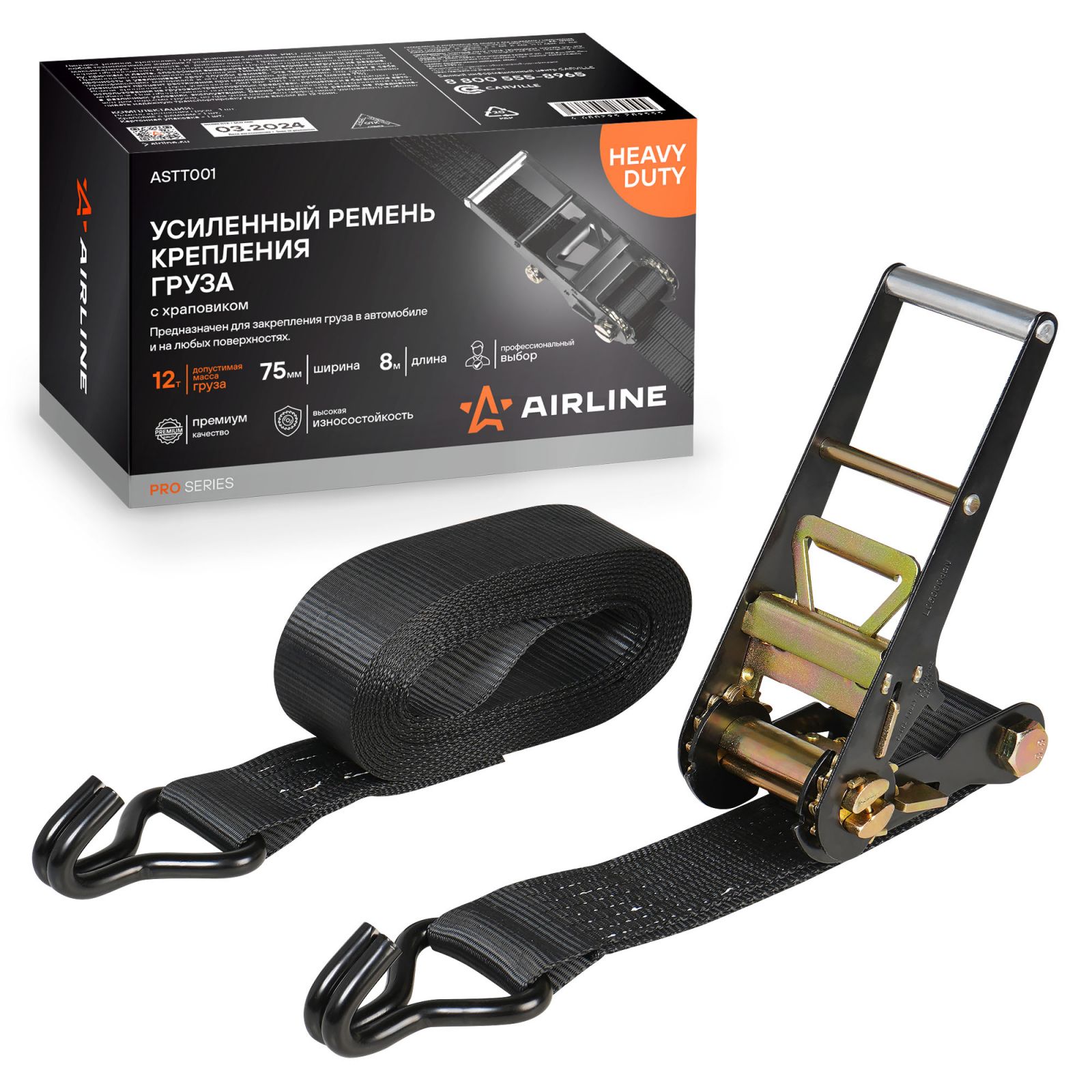 Ремень крепления груза усиленный PRO с храповиком 12 т, 8 м (ASTT001)