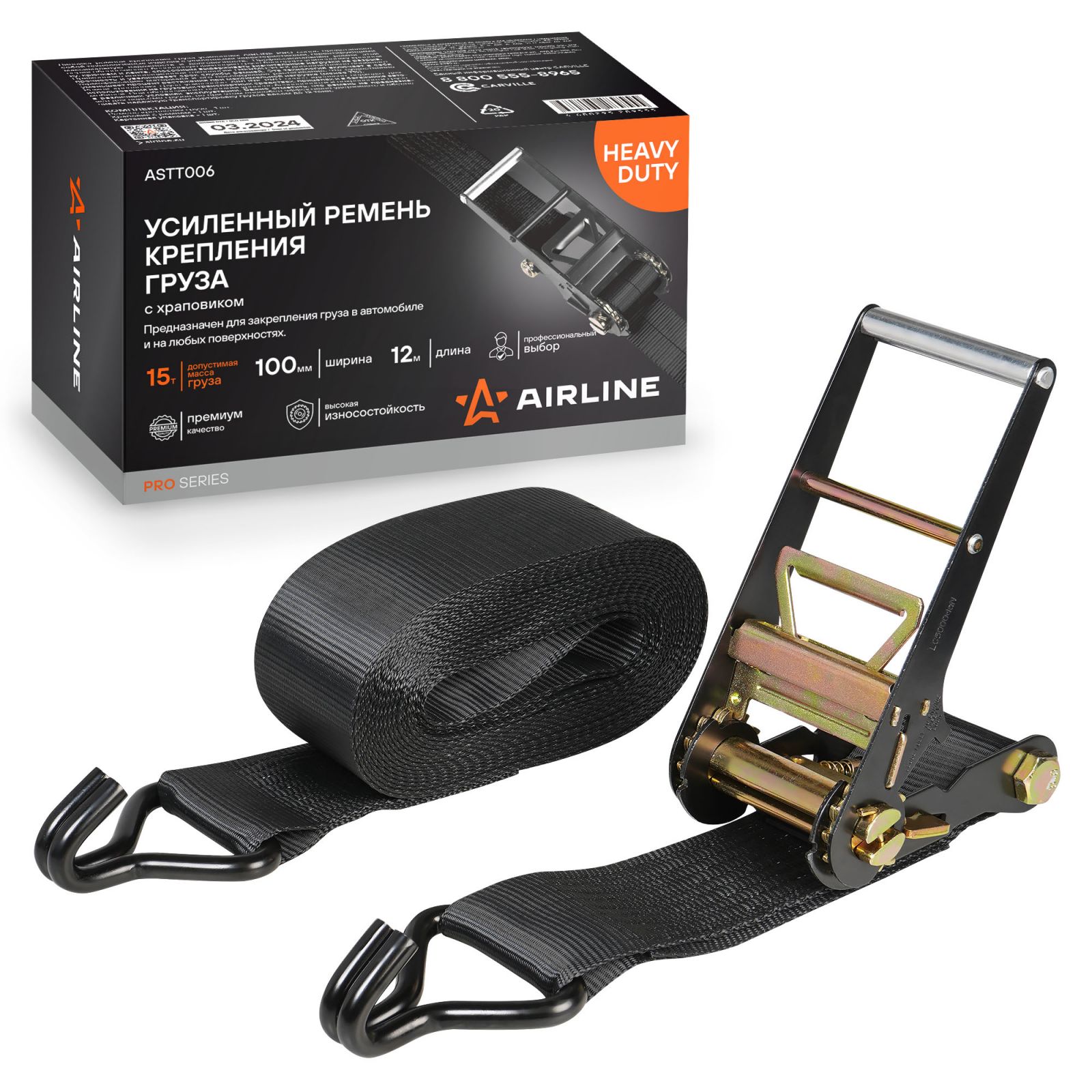Ремень крепления груза усиленный PRO с храповиком 15 т, 12 м (ASTT006)