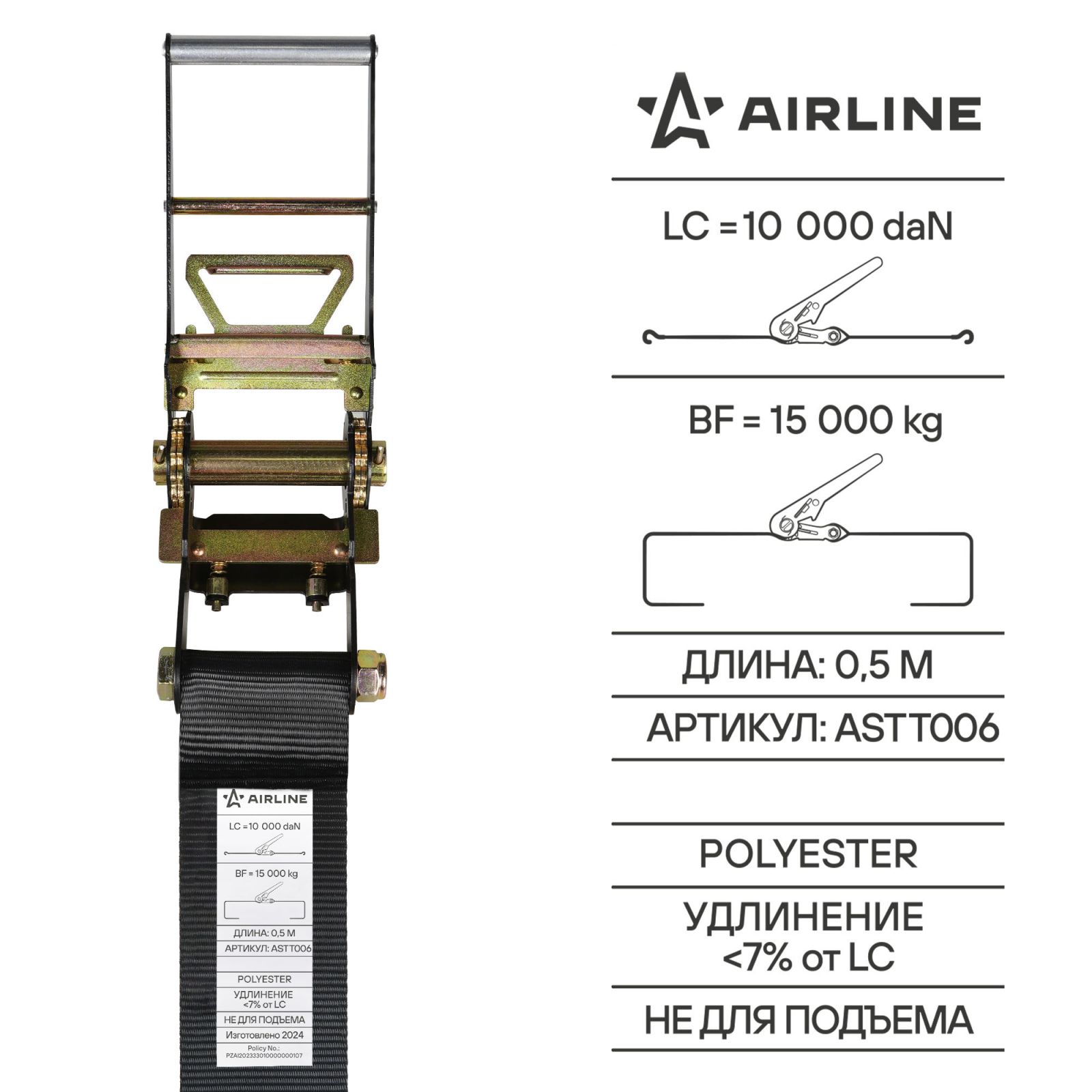 Ремень крепления груза усиленный PRO с храповиком 15 т, 10 м (ASTT005)