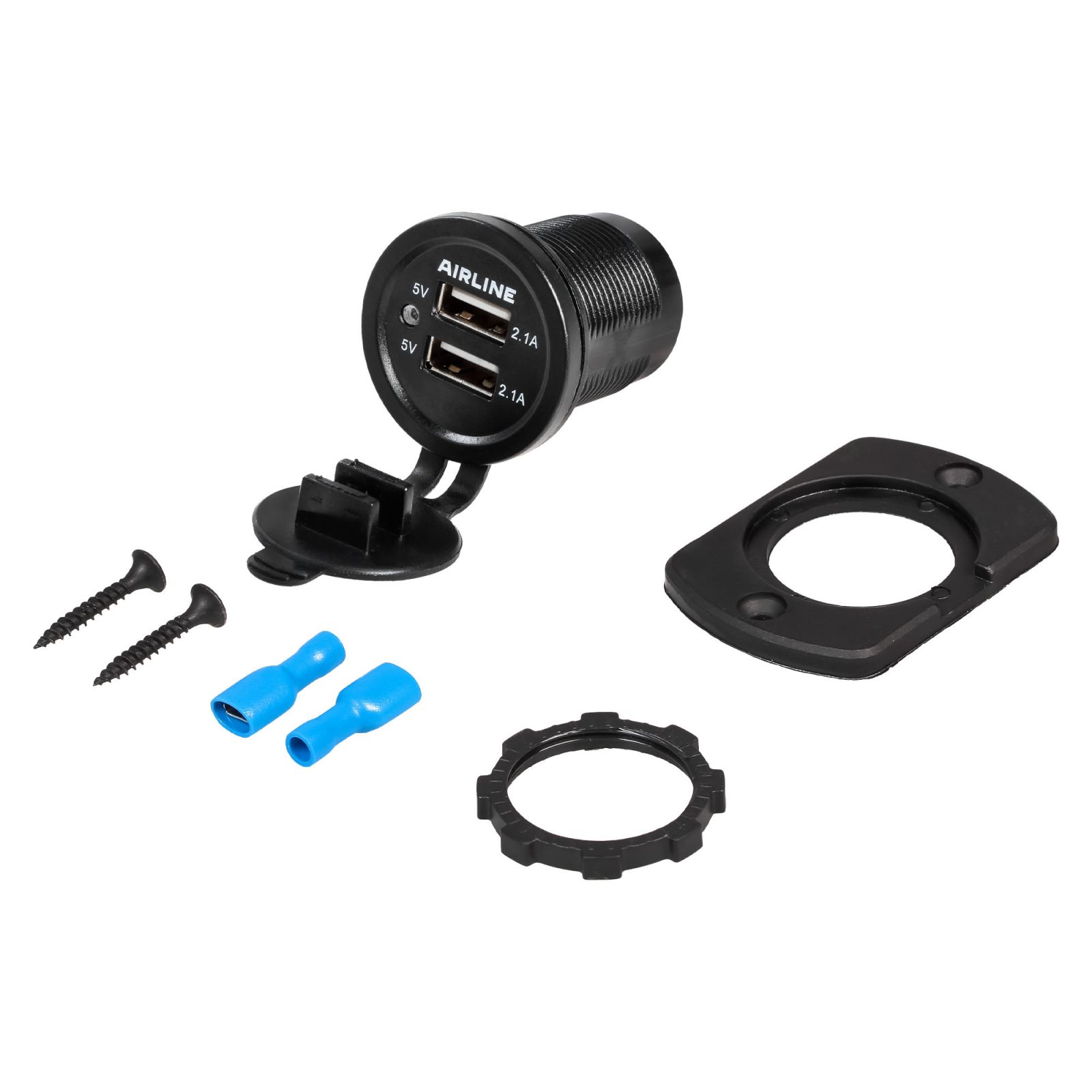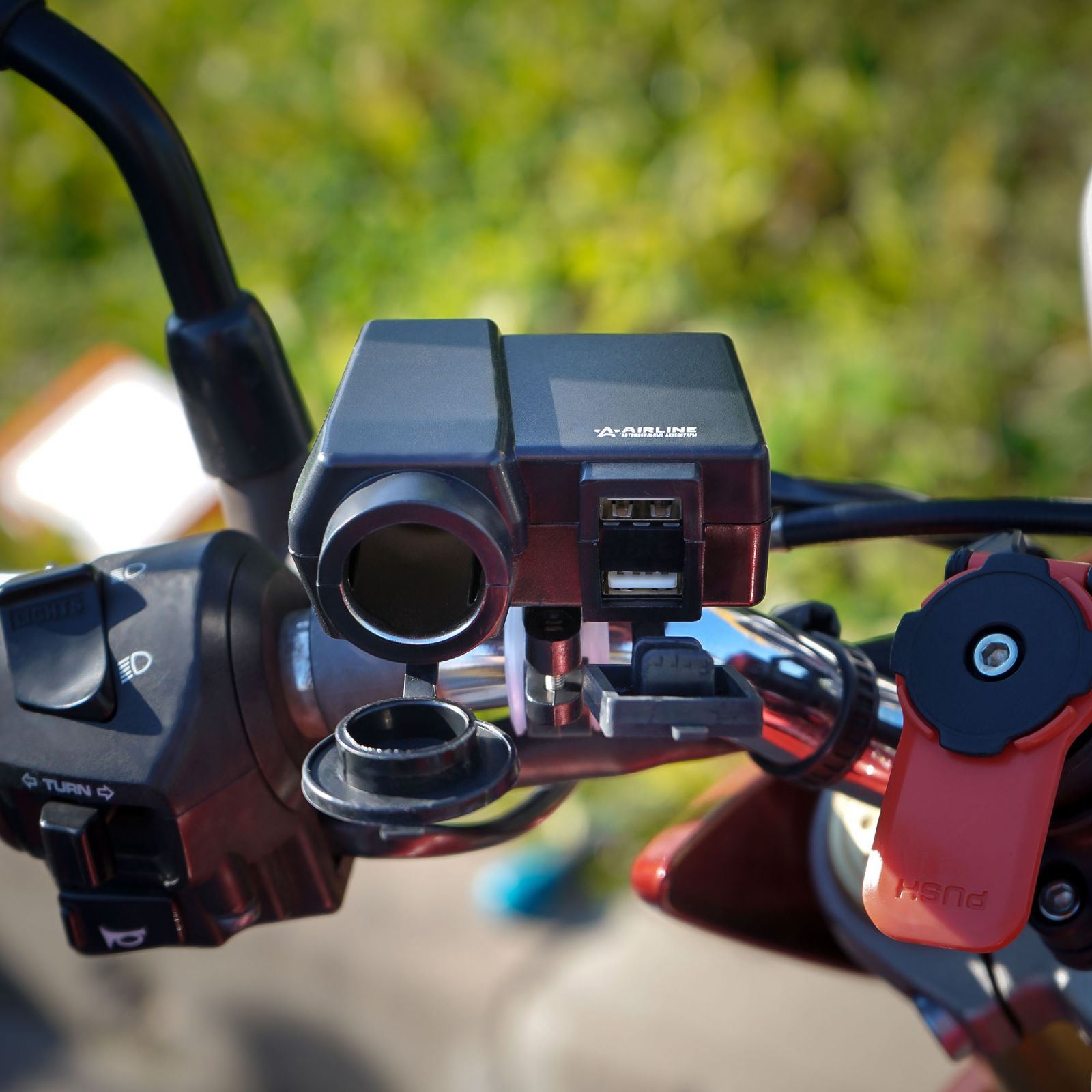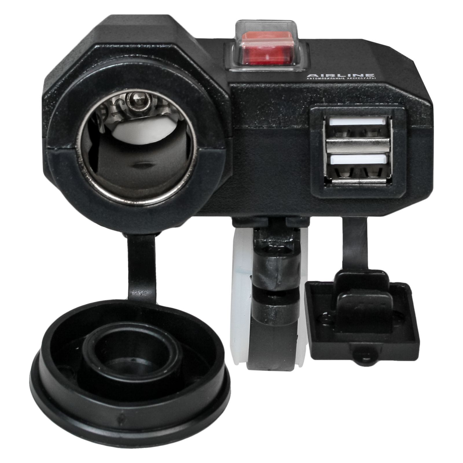 Розетка USB для мотоциклов с прикуривателем (5В, 2.1А+2.1А) (вкл/выкл) (AEBJ207)