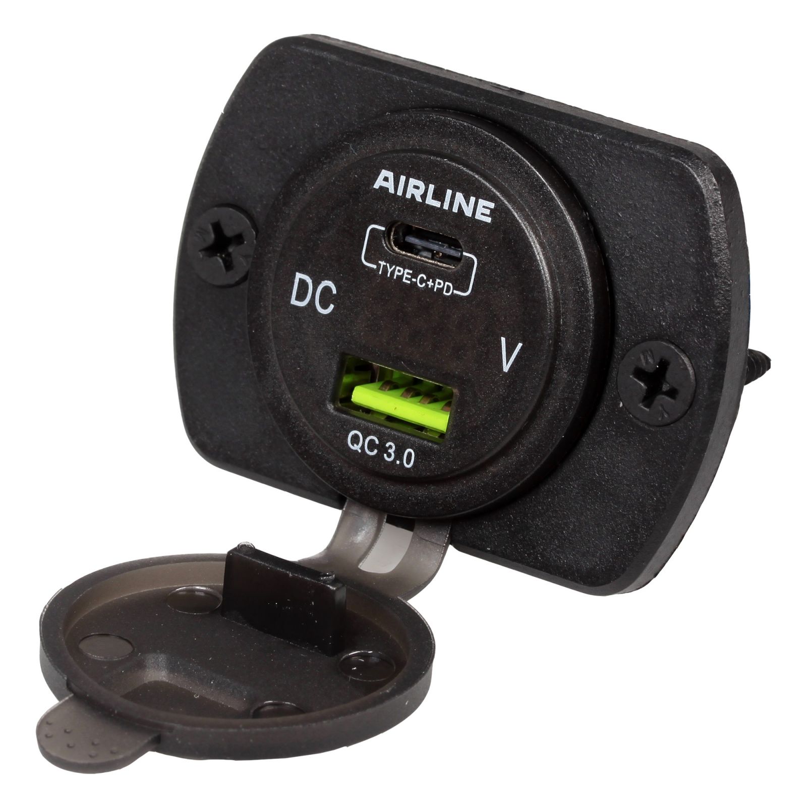 Розетка USB встраиваемая влагозащ. с 2 портами и вольтметром (5В, QC3.0 + Type-c PD) (AEBJ200)