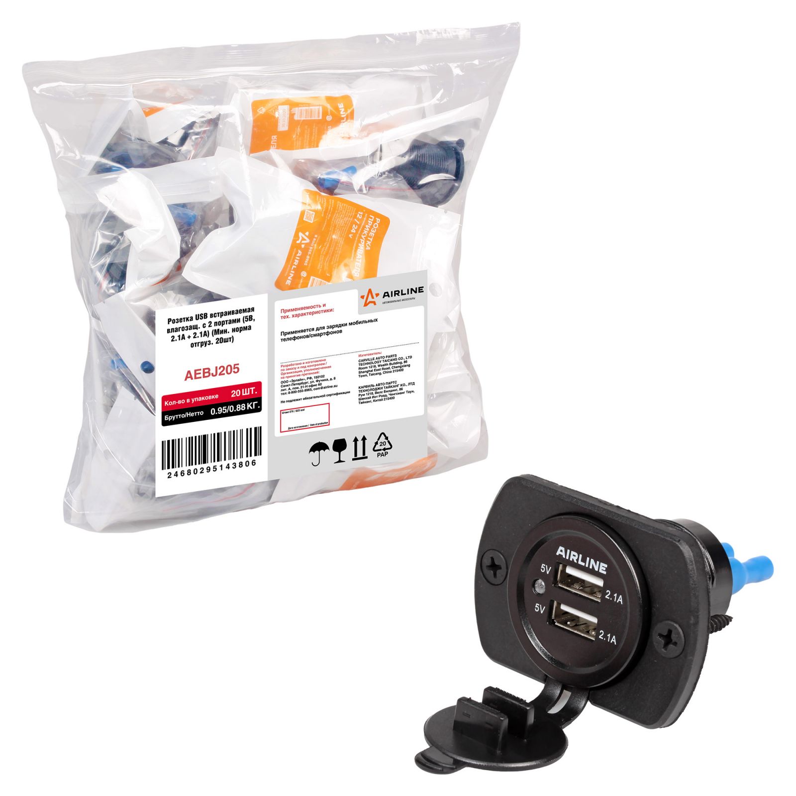 Розетка USB встраиваемая влагозащ. с 2 портами (5В, 2.1А + 2.1А) (В пакете) (AEBJ205)