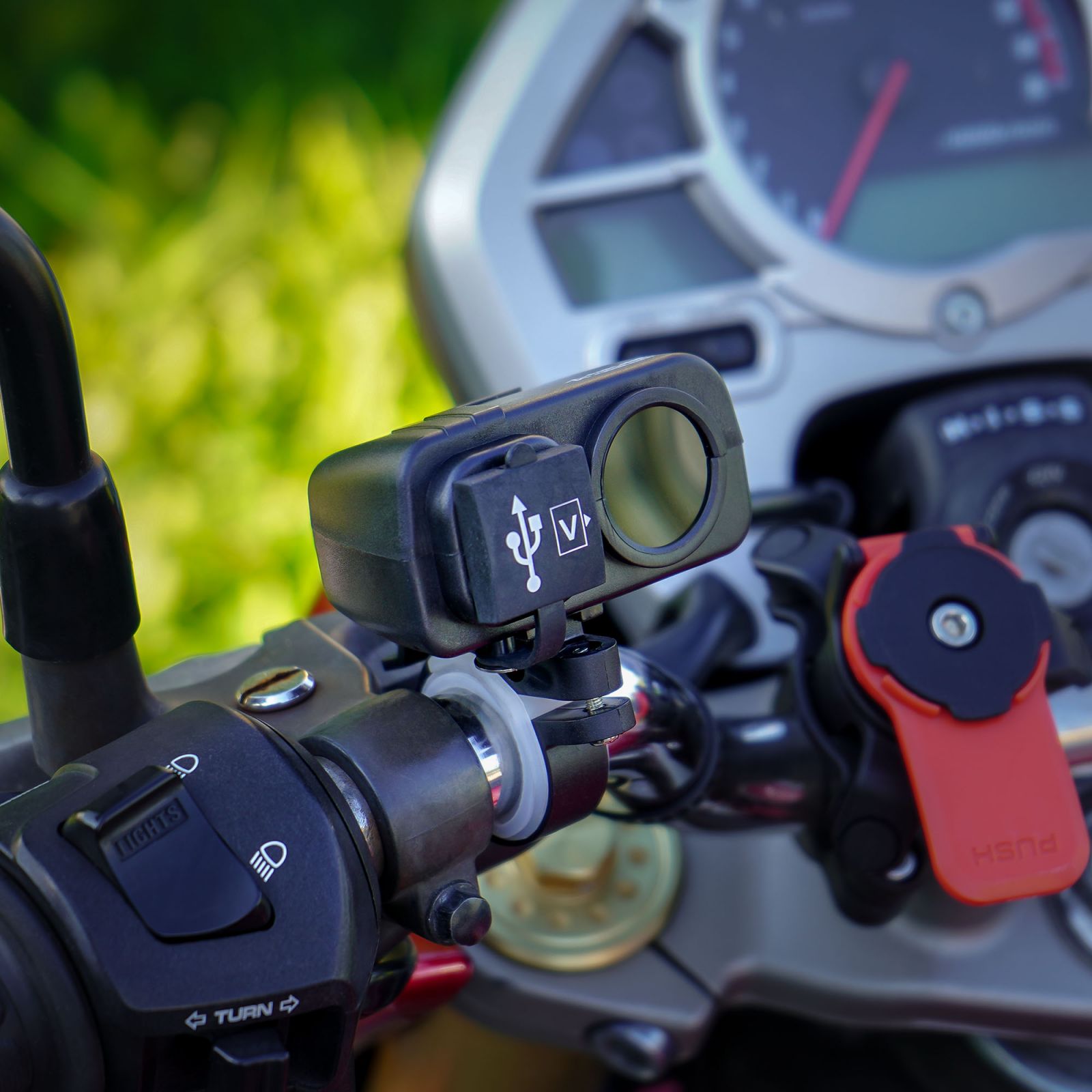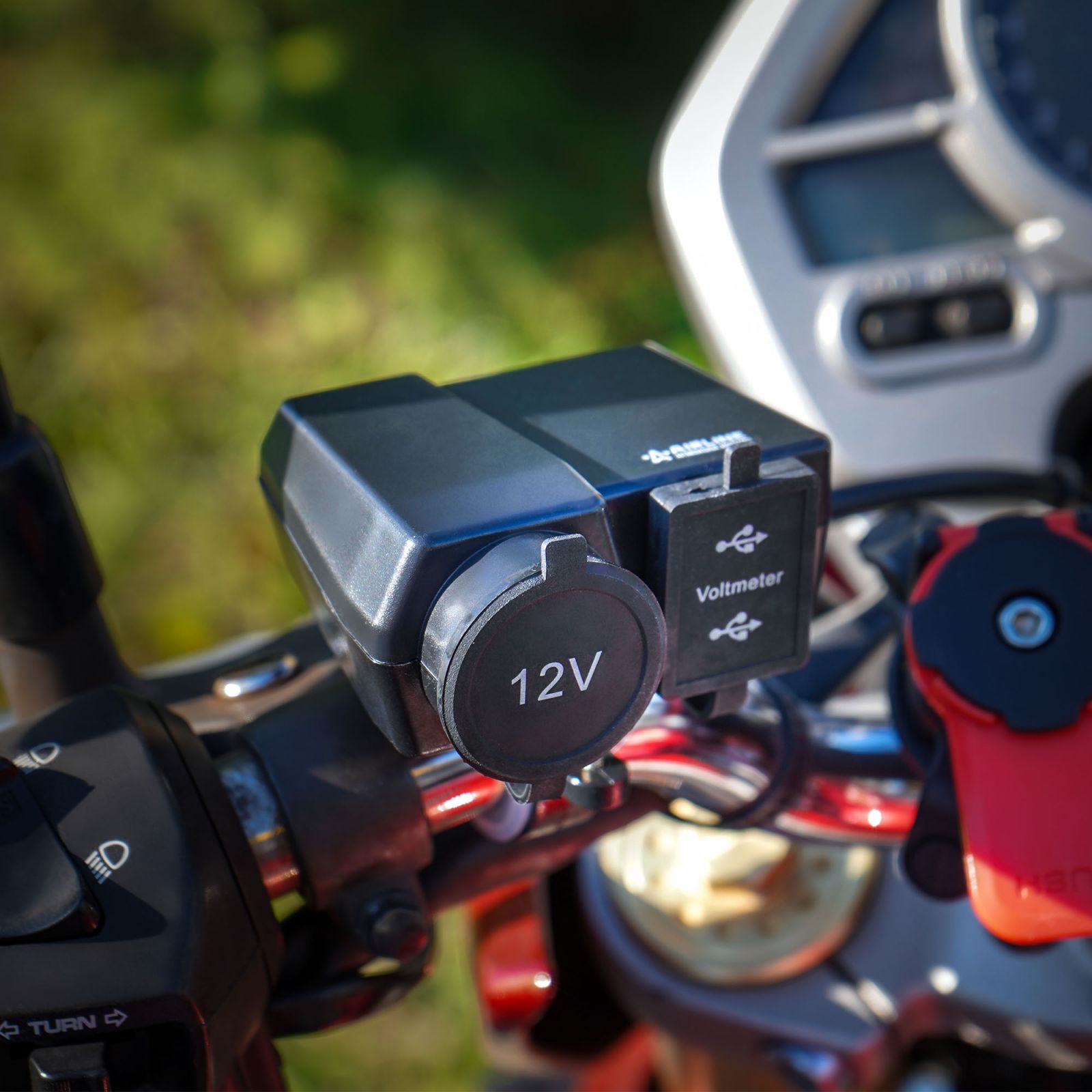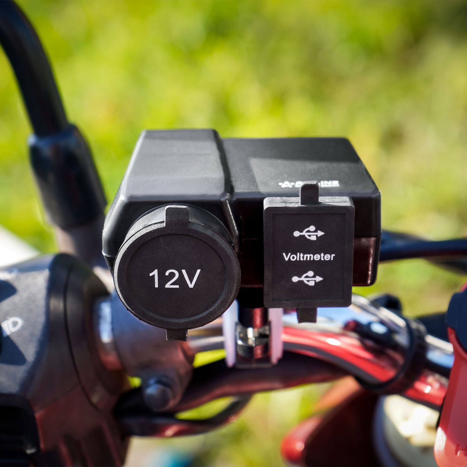 Розетка USB для мотоциклов с вольтметром и прикуривателем (5В, 2.1А+2.1А) (вкл/выкл) (AEBJ208)