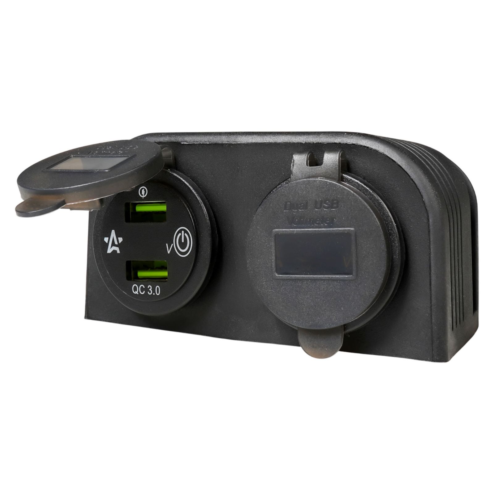 Розетка USB встраиваемая влагозащ. с 2 портами и вольтметр. (вкл/выкл) (5В, QC3.0+QC3.0) (AEBJ202)