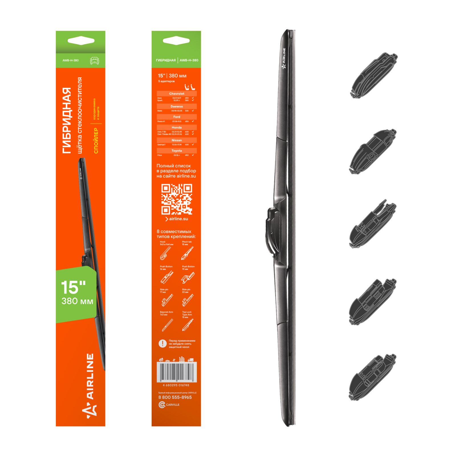 Щетка стеклоочистителя гибрид 380мм (15") 3 адаптера (AWB-H-380)